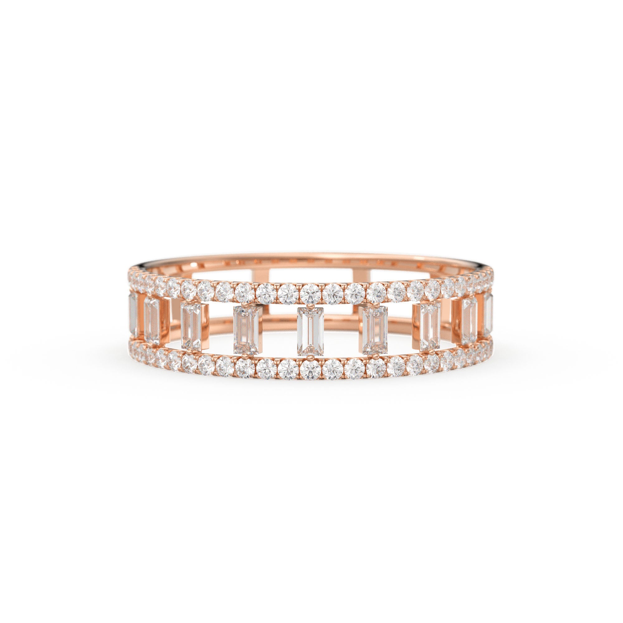 14k Gold Gold Double Row Micro Pave Diamond Ring with Baguette DiamondItem Details✔ Made to Order✔...