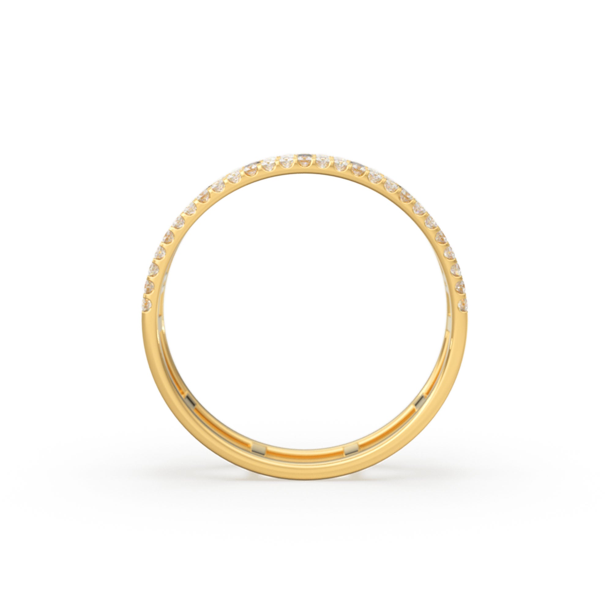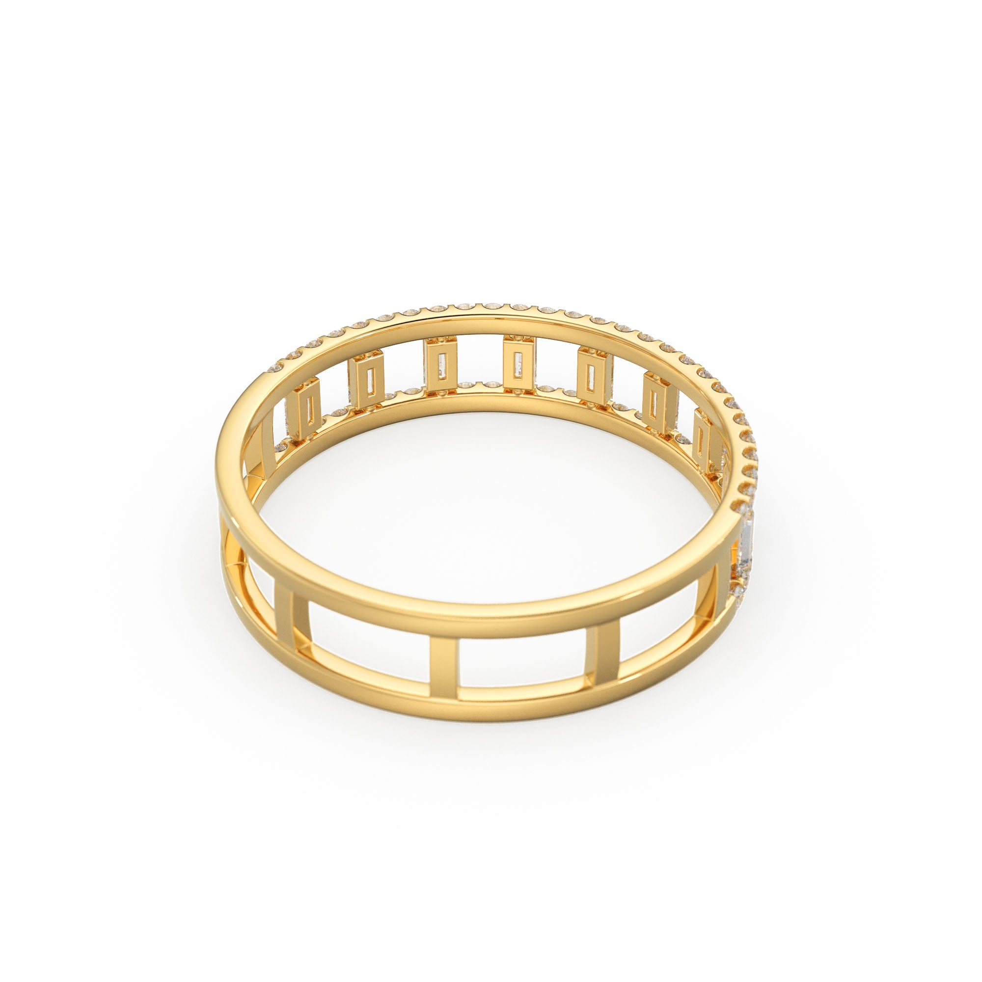 14k Gold Gold Double Row Micro Pave Diamond Ring with Baguette Diamond