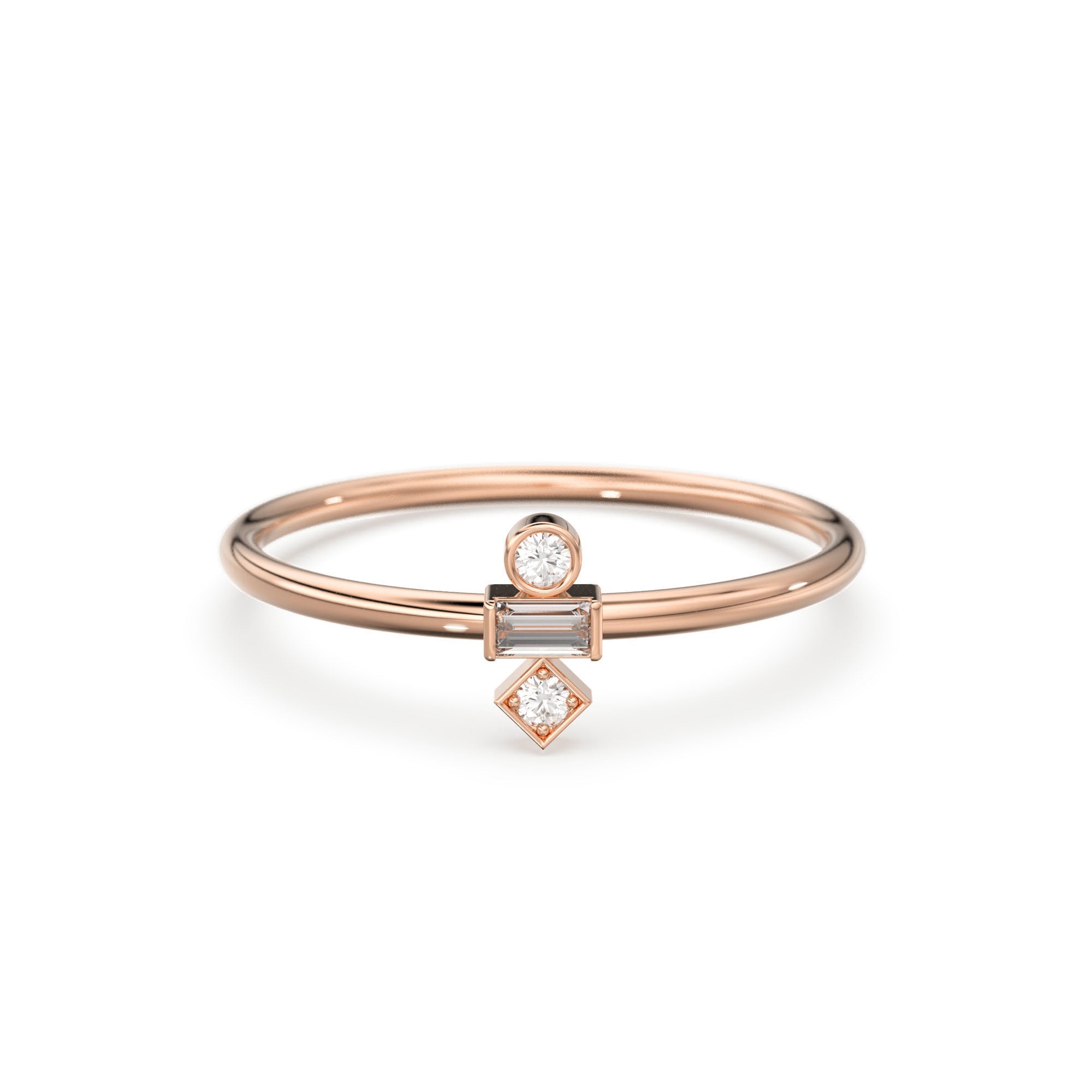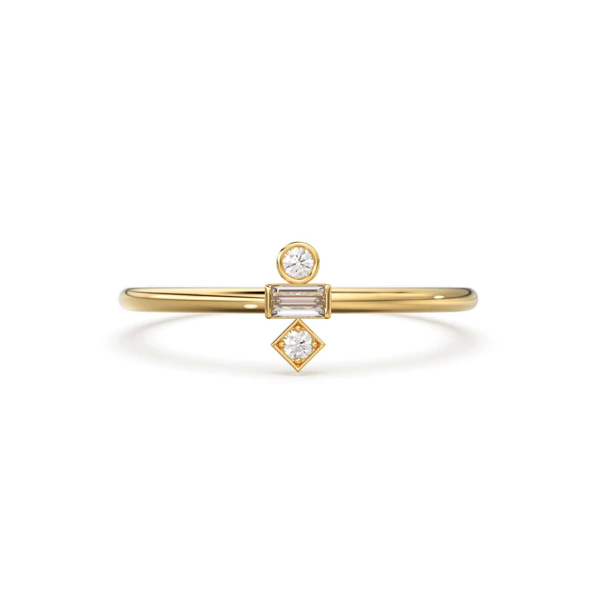 Baguette Diamond Ring / 14k Gold Baguette and Round Cut Diamond Ring / Minimalist Baguette Ring / Dainty Mix Diamond Ring