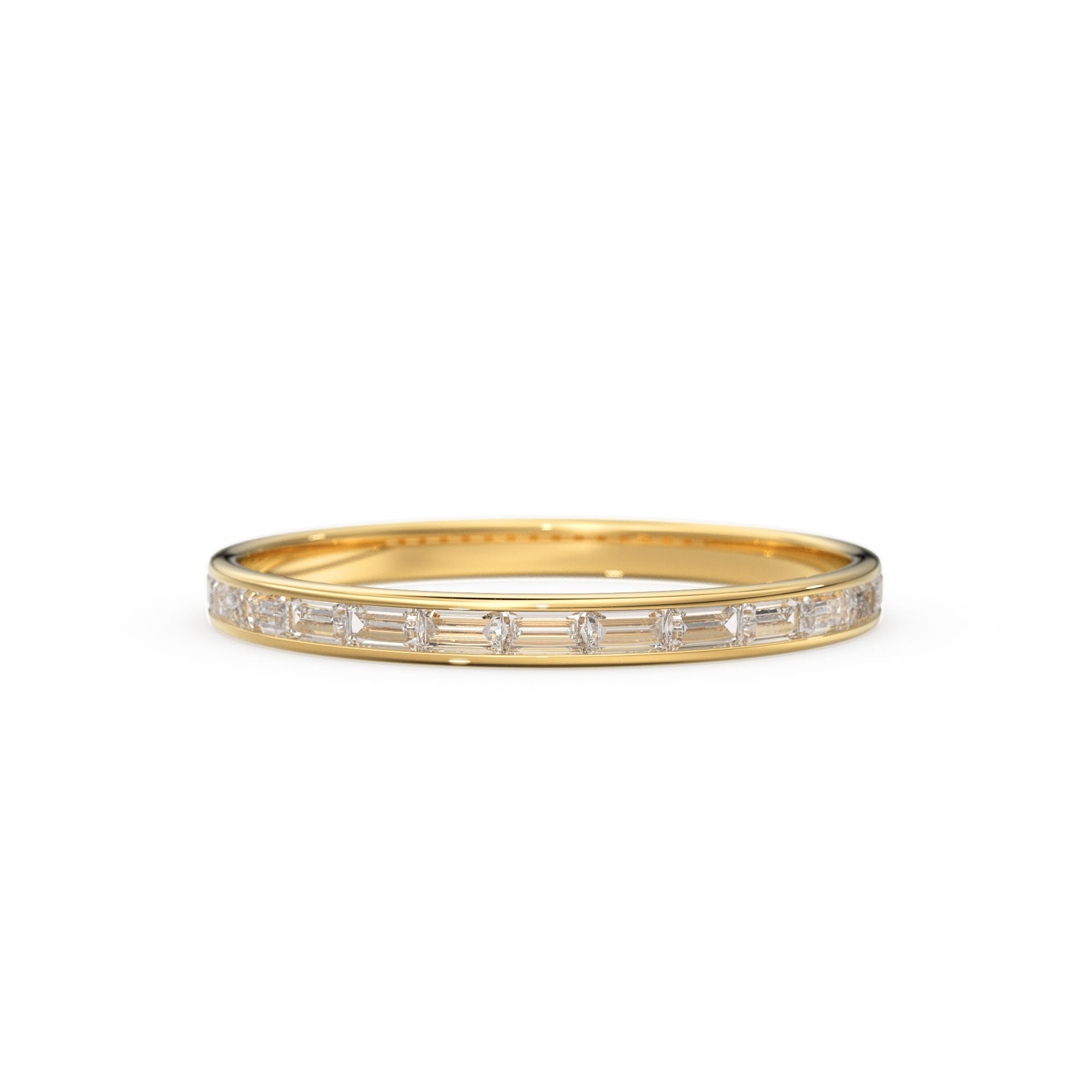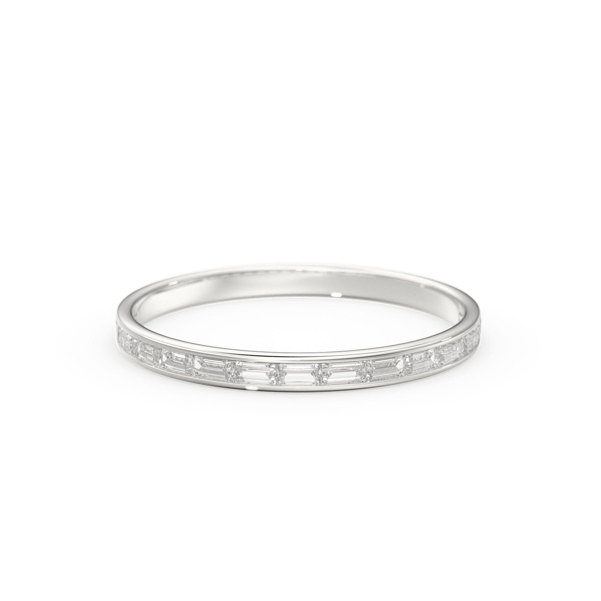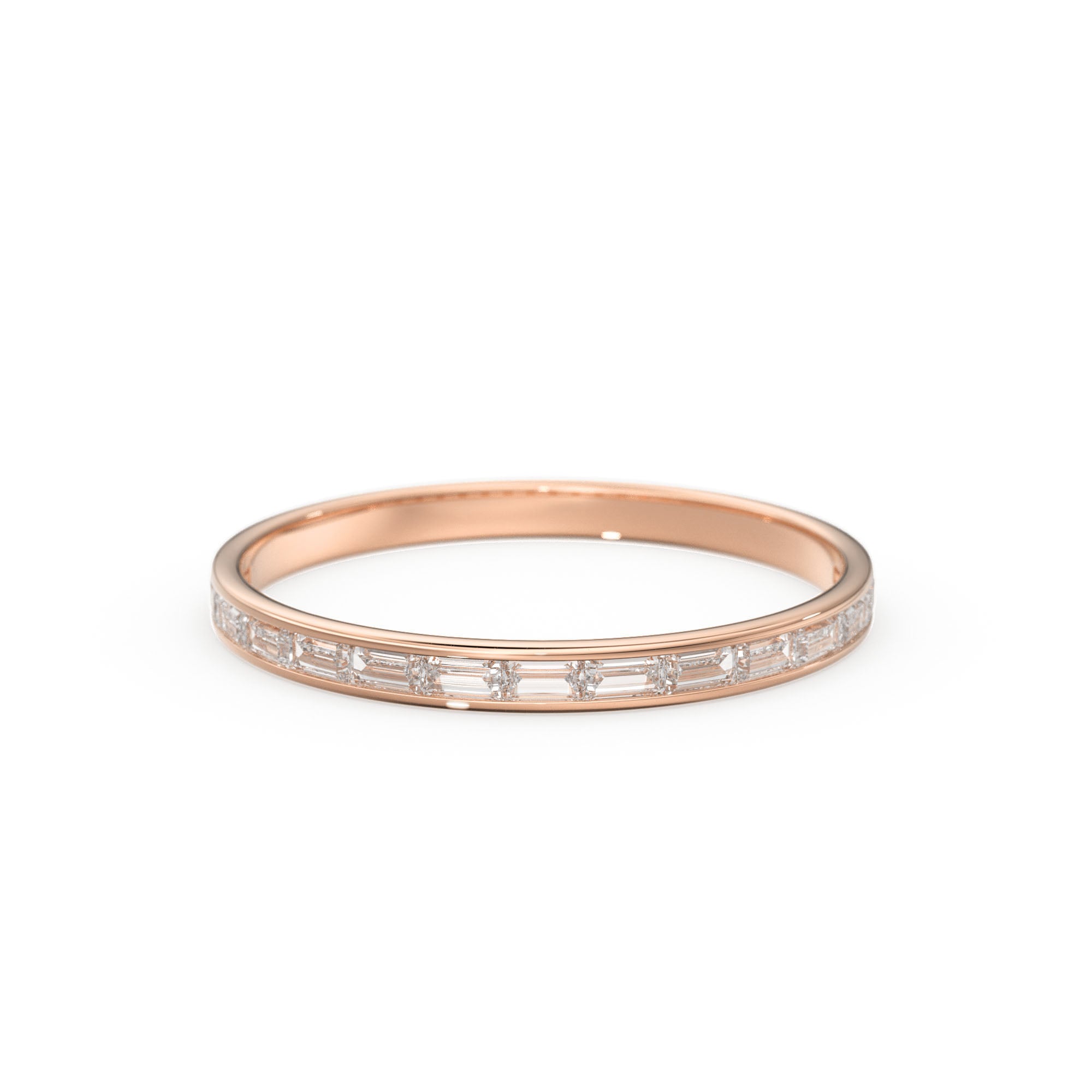 14K Gold Baguette Diamond Band / 2.0MM Thin Channel Set Diamond Ring / Half Eternity Stackable Ring / Diamond Wedding Ring / Minimalist Ring