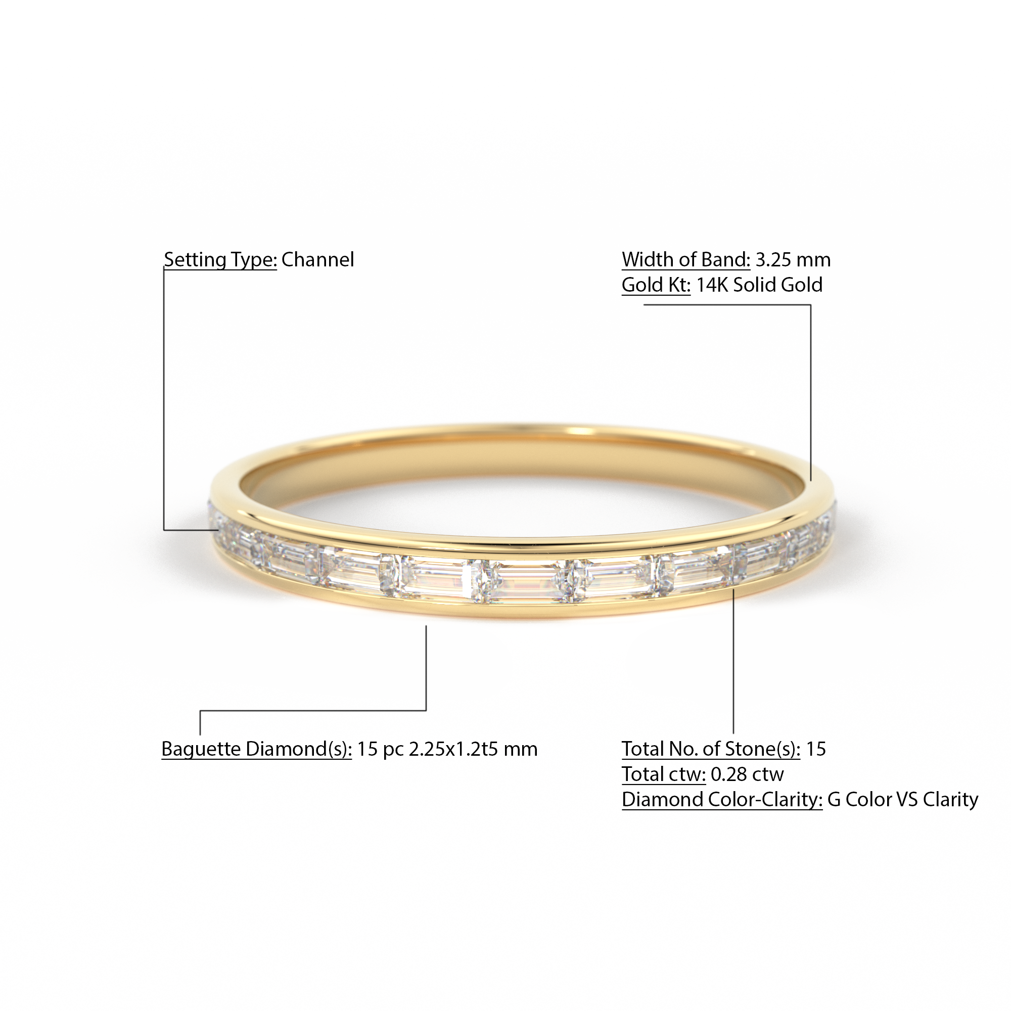14K Gold Baguette Diamond Band / 2.0MM Thin Channel Set Diamond Ring / Half Eternity Stackable...