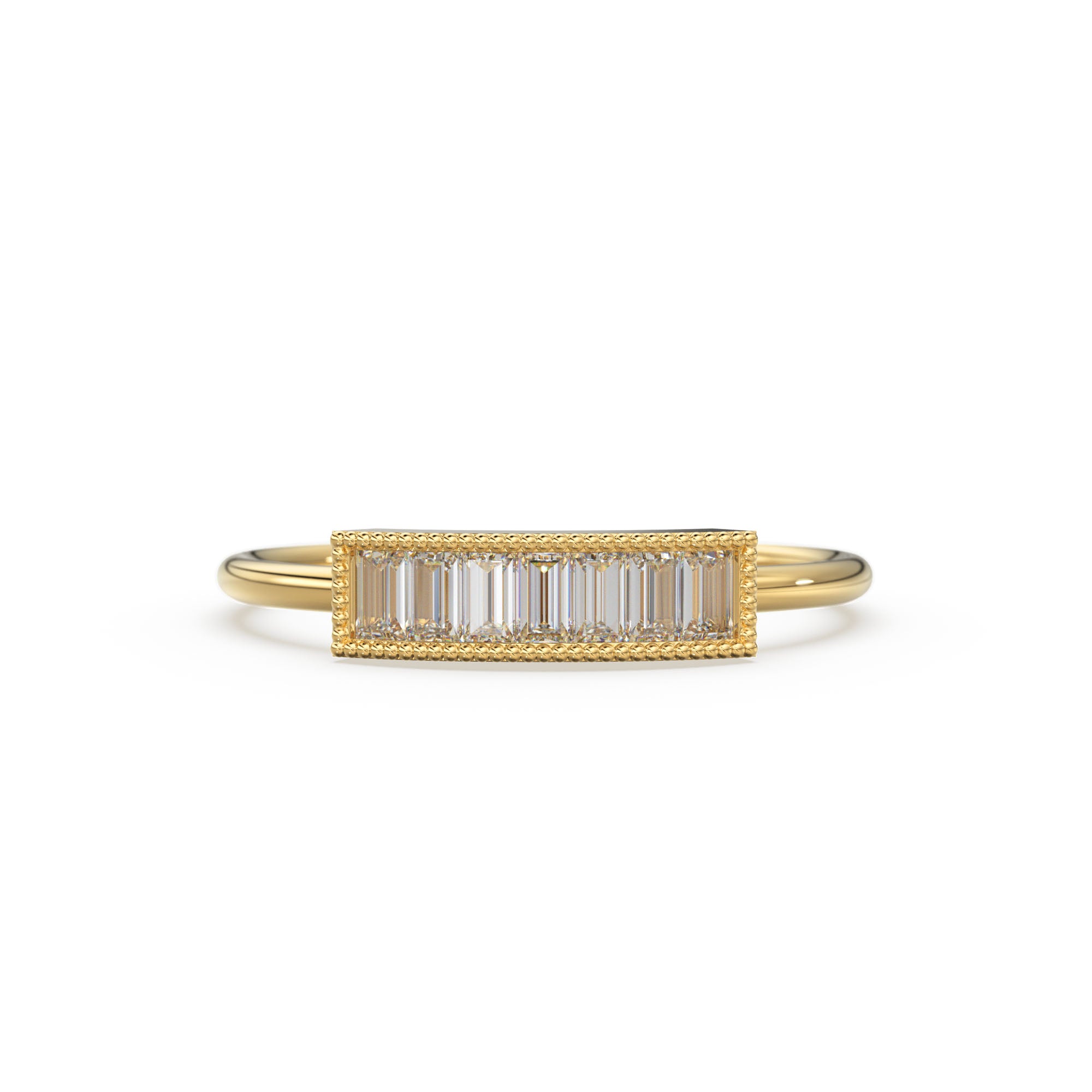 Diamond Baguette Ring / 14k Rose Gold / Anniversary Gift / Petite Stackable Ring / Engagement Ring / Gold Band / Channel Set Dainty Ring