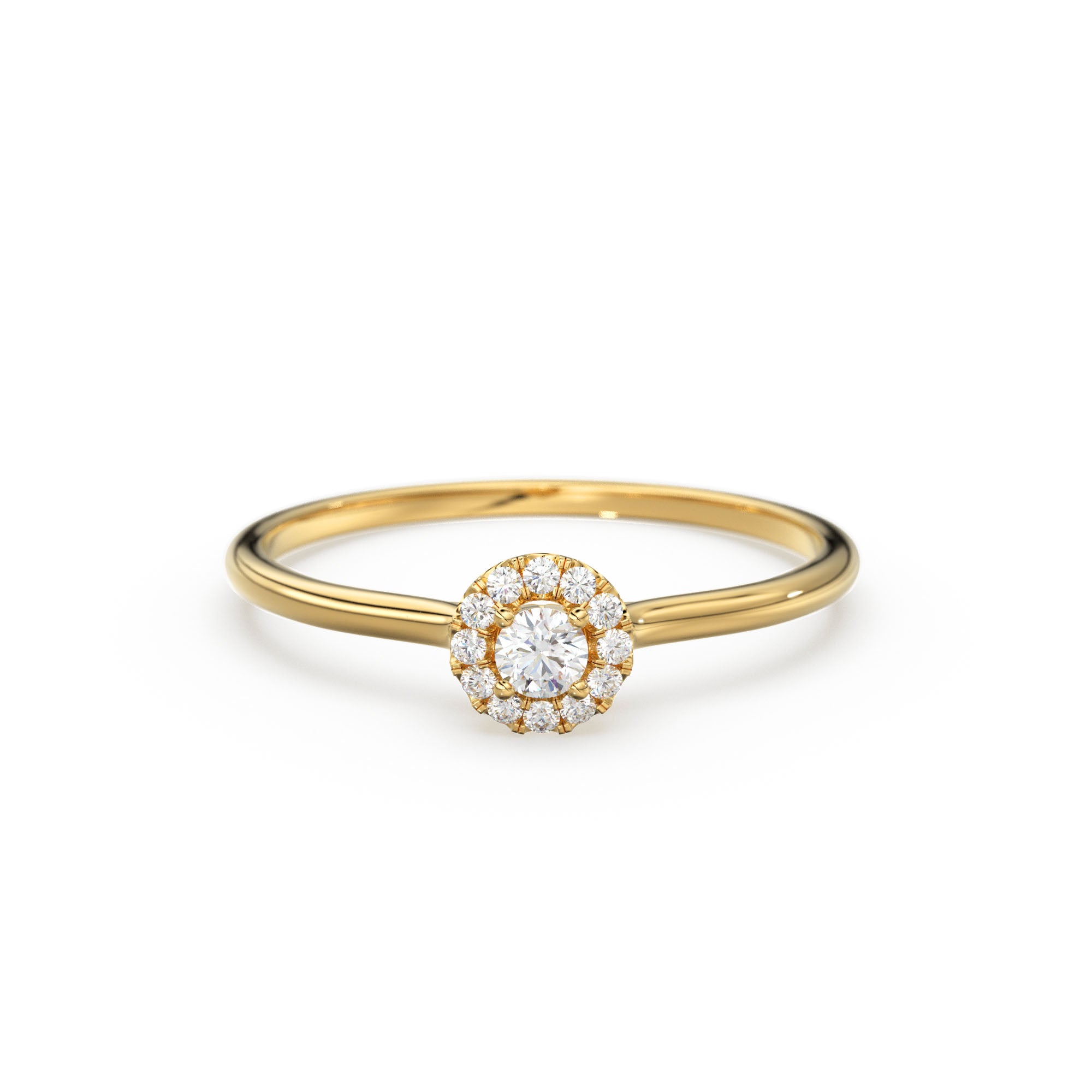 Diamond Ring / 14k Halo Diamond Ring / Minimal Diamond Ring / Delicate Diamond Ring / Promise Ring / Birthday Gift Idea / Gold Ring