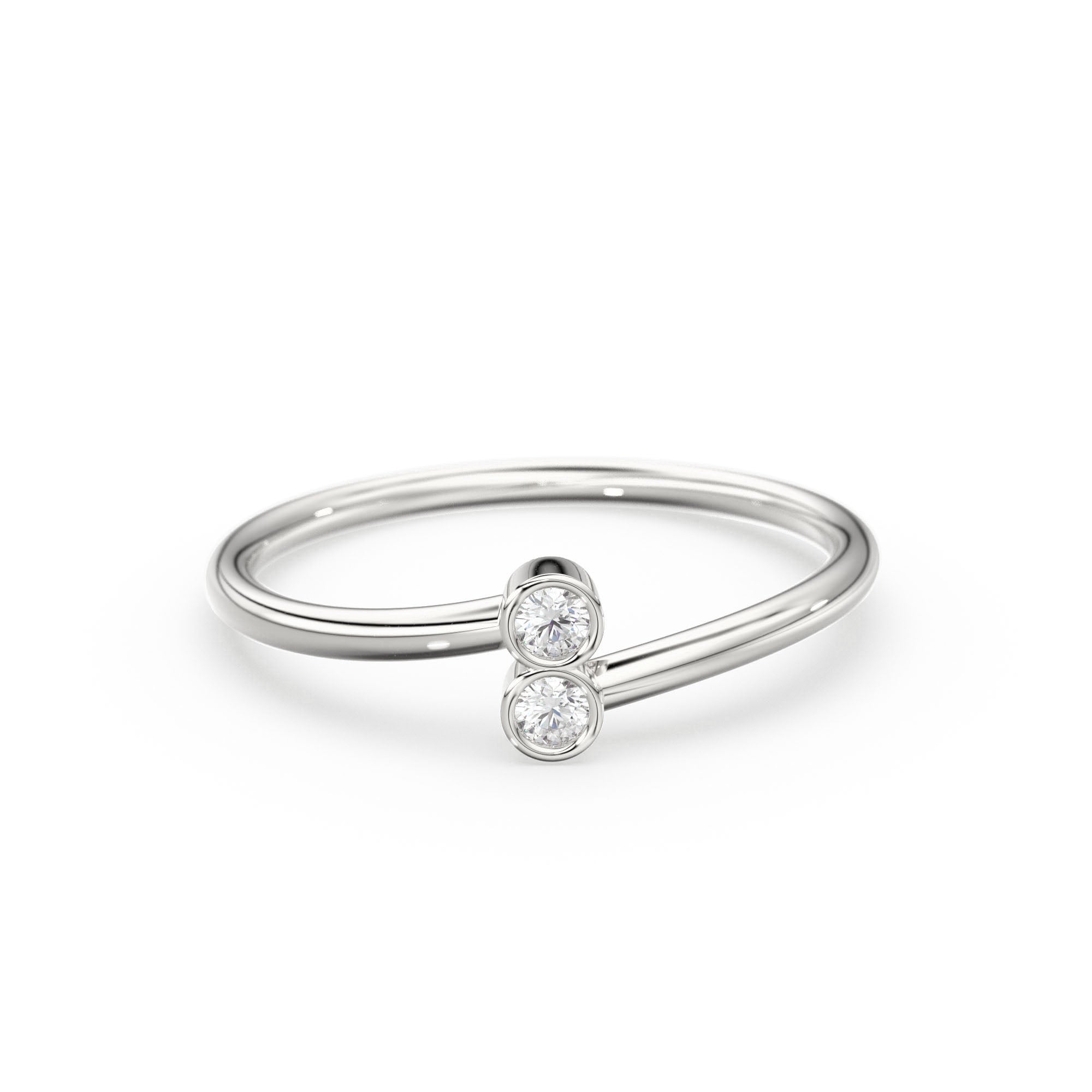 Dual Diamond Ring / Double Stone Ring / 14k Gold Ring / Diamonds Cuff Ring, Gold Stacking Ring / Thin gold ring / Diamond Bypass Ring
