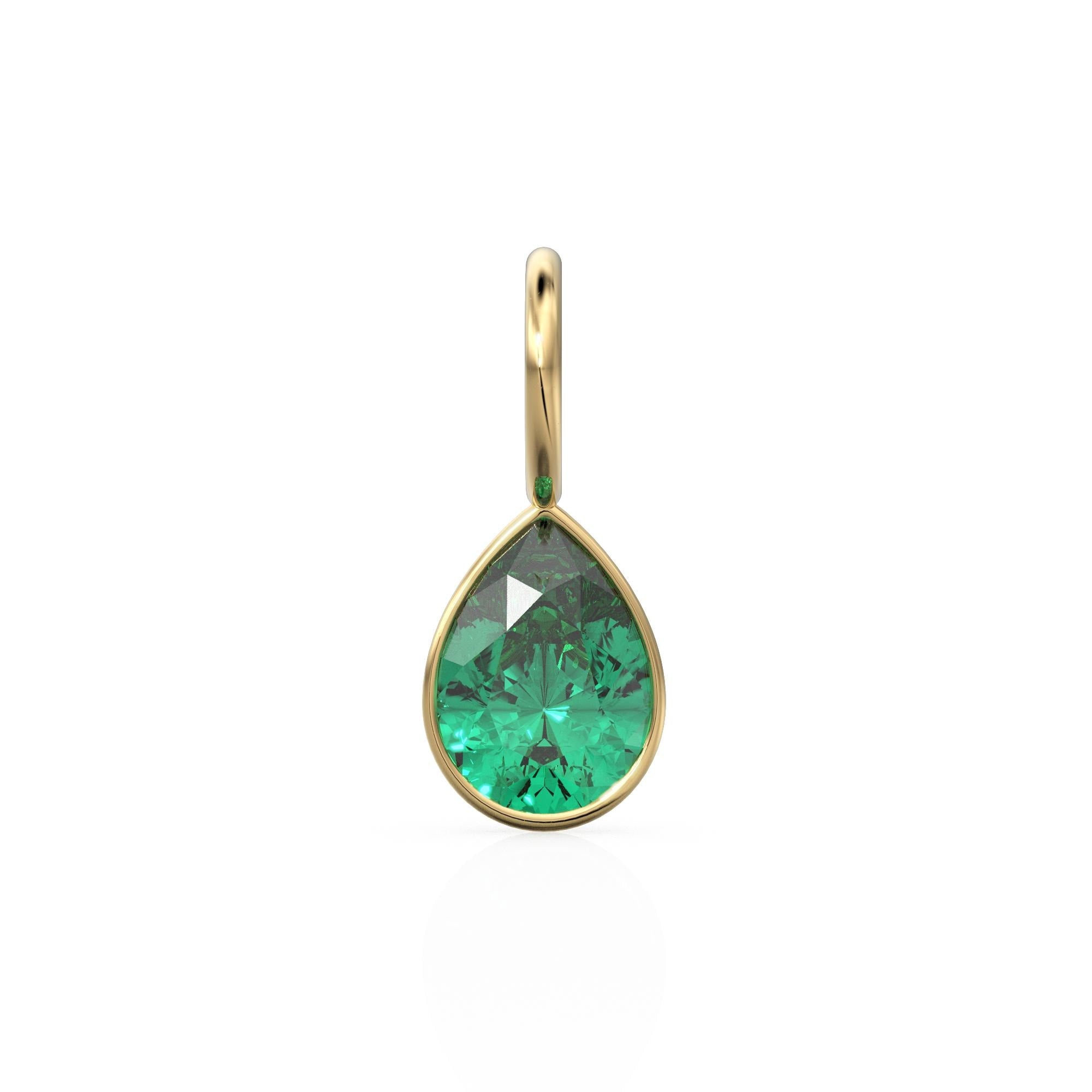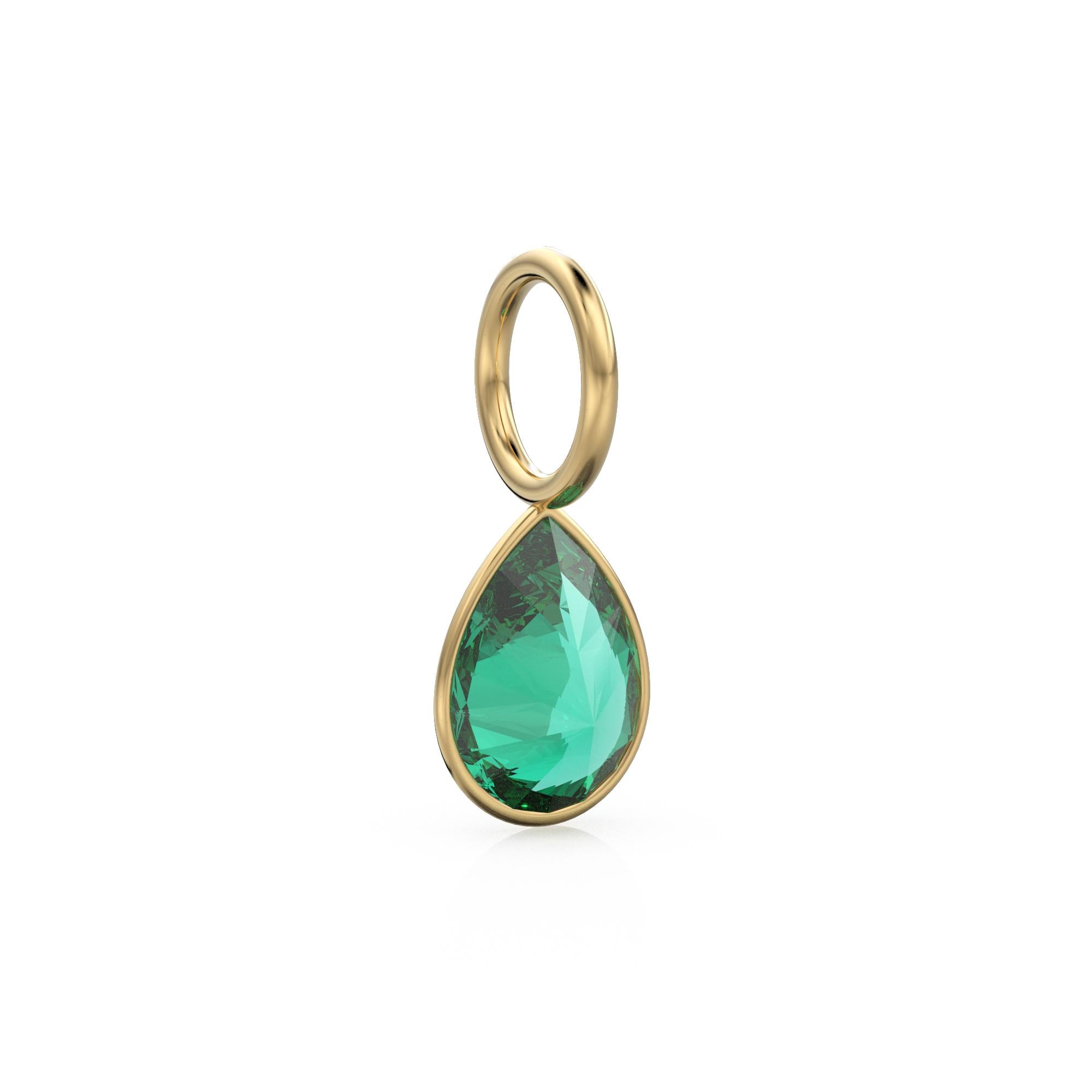 Zambian Emerald 7mm 14k Yellow Solid Gold Charm Pendant Bezel Jewelry Finding / May Birthstone / Green Gemstone / Pear Cut Amulet