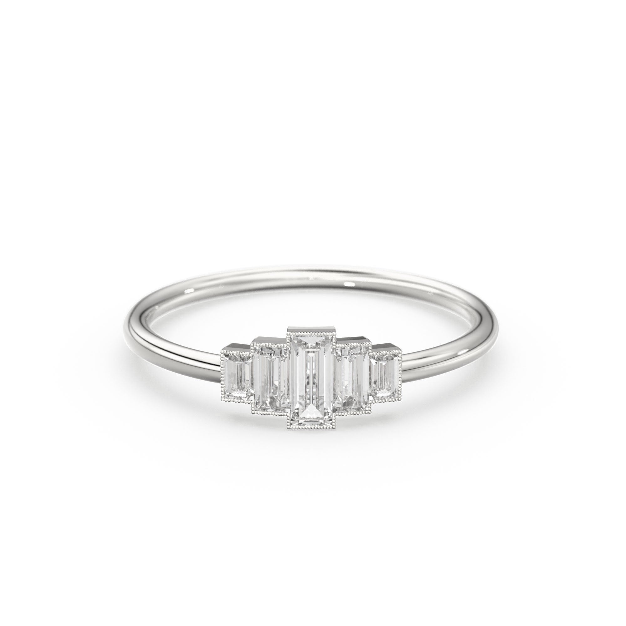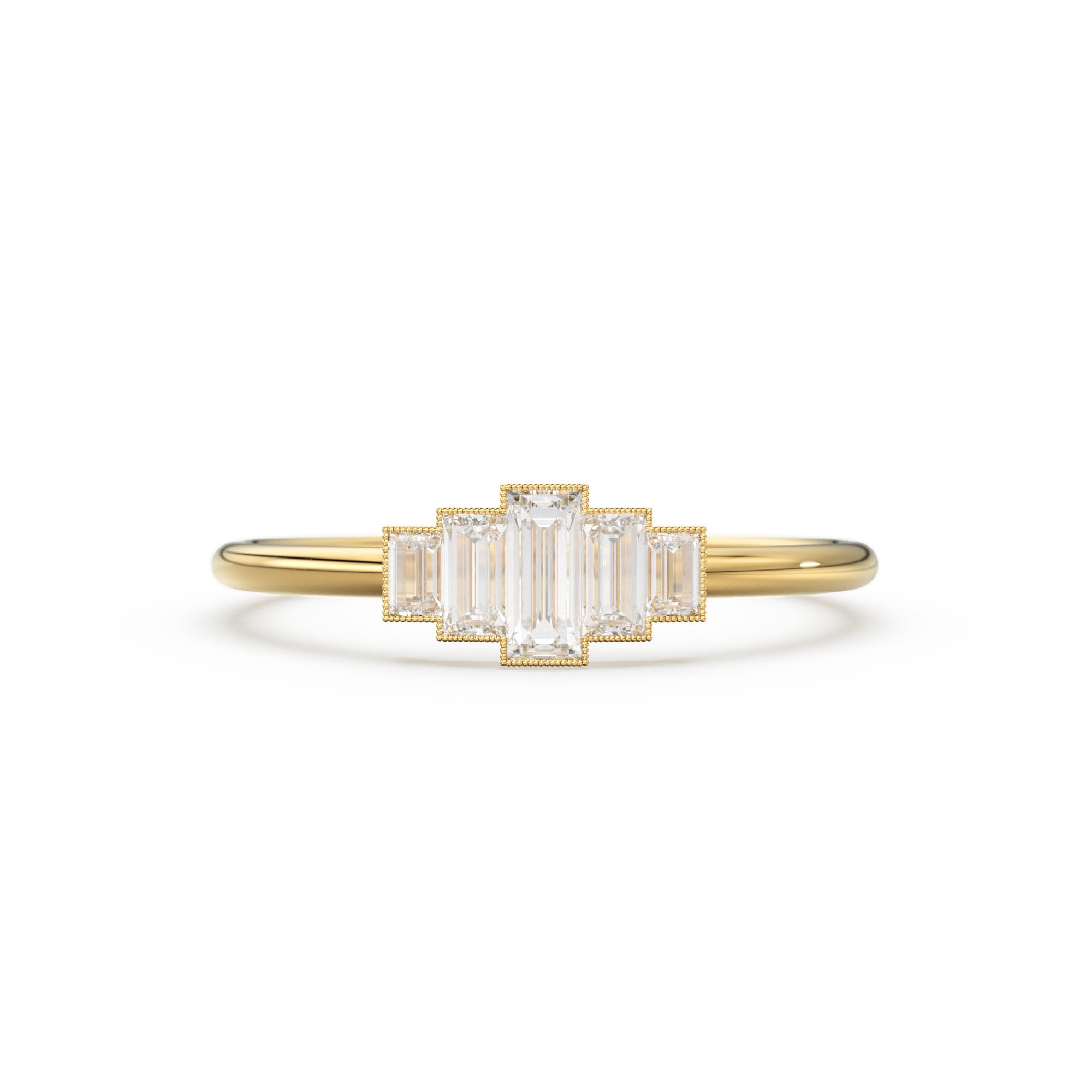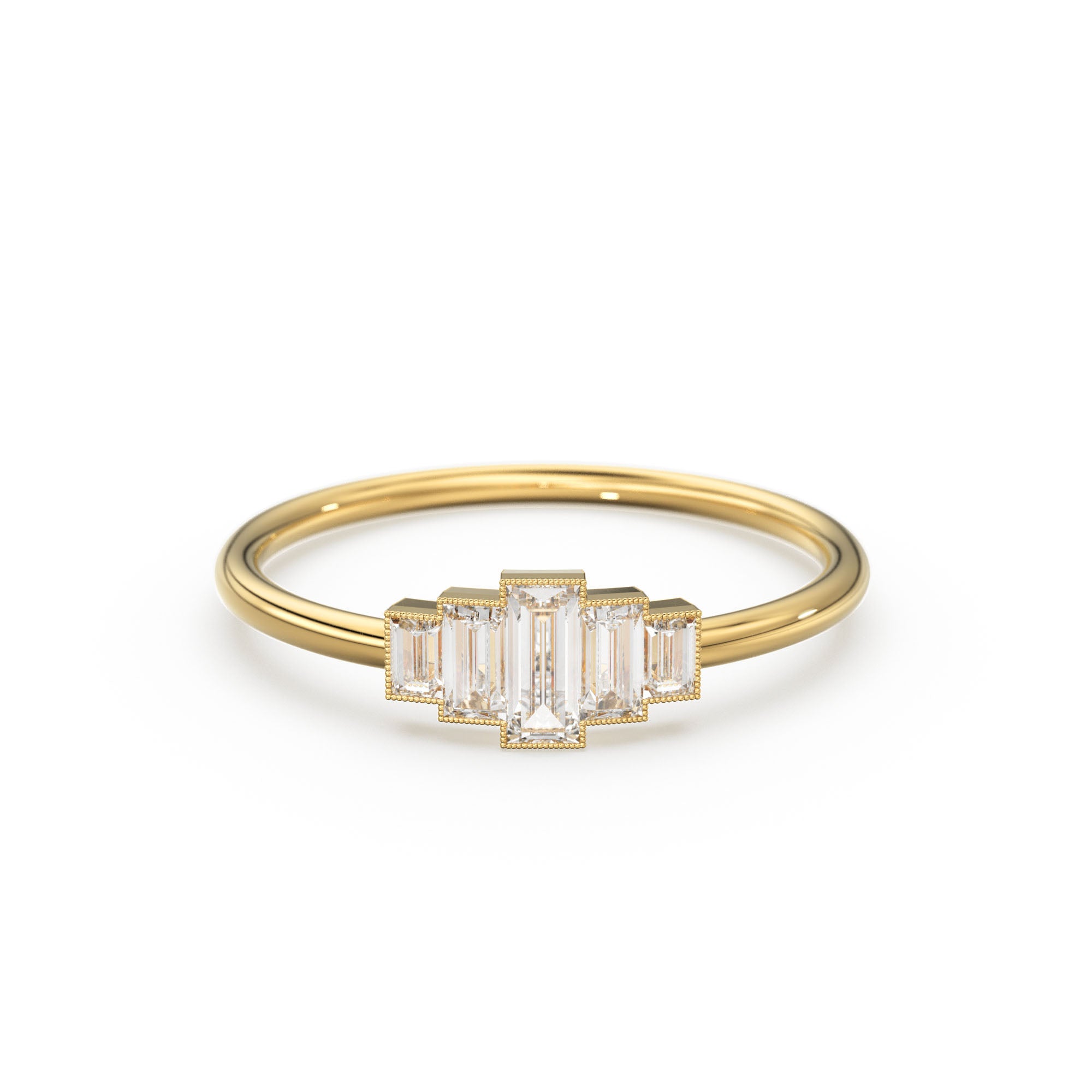 14k Gold Step Cut Baguette Diamond Alternative Engagement Ring