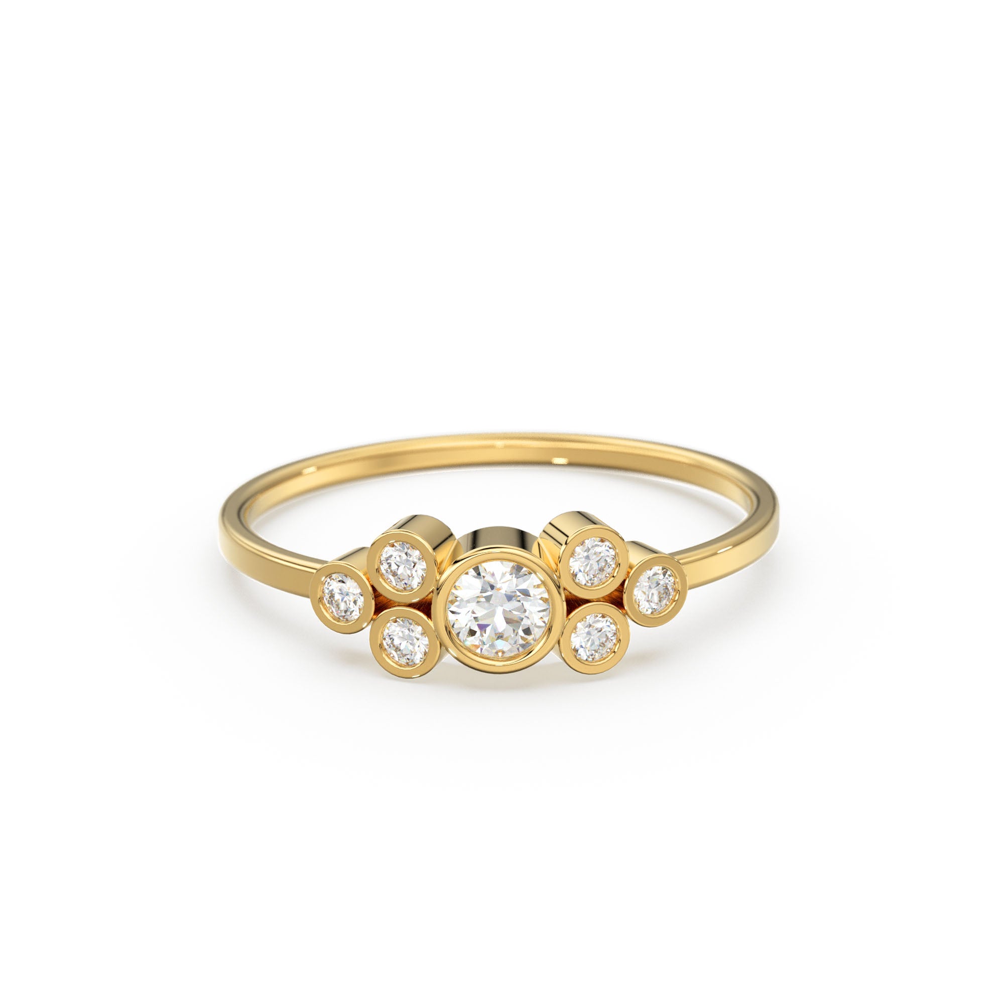Engagement Ring / 14K Gold Round Cut Bezel Set Diamond Engagement Ring / Unique Engagement Ring...