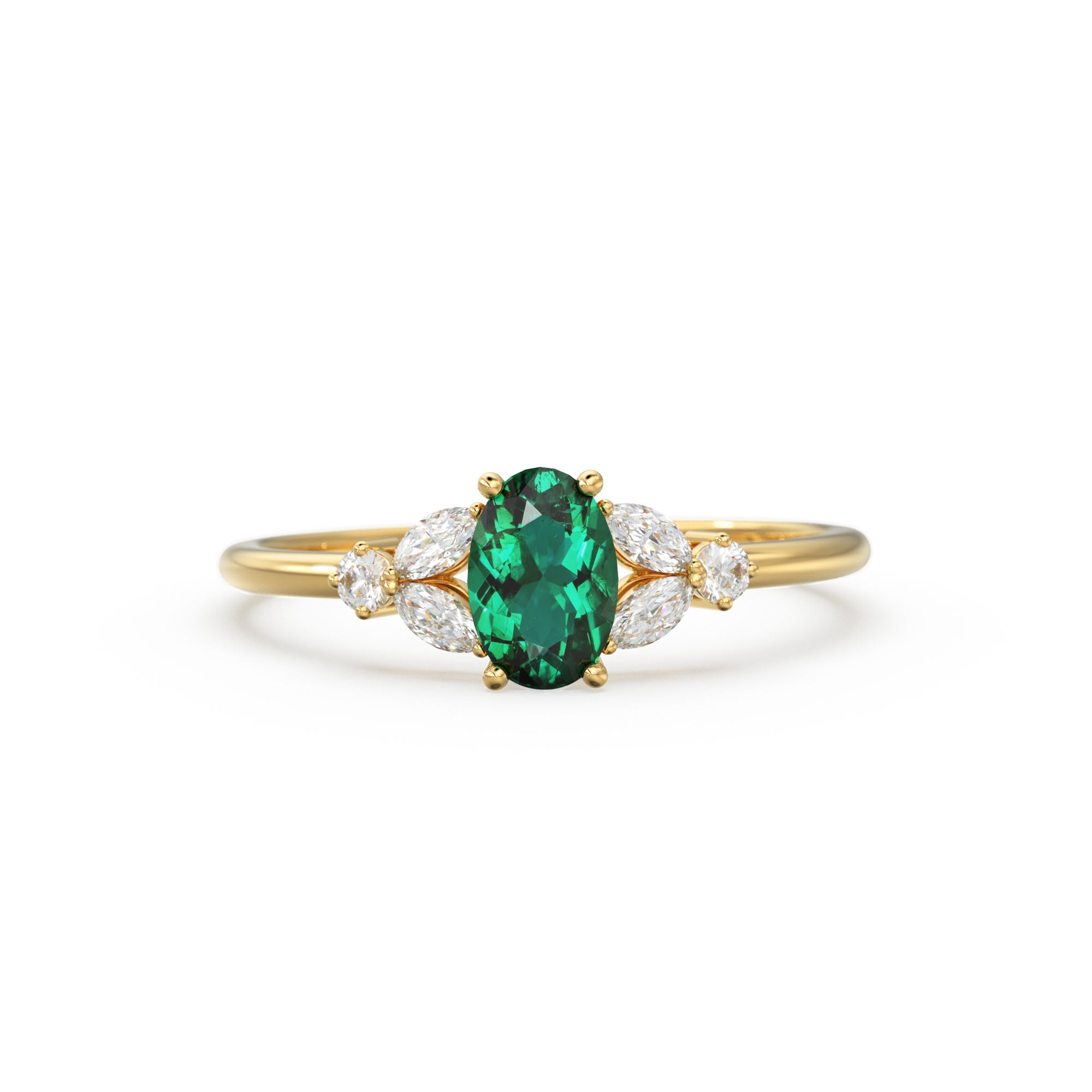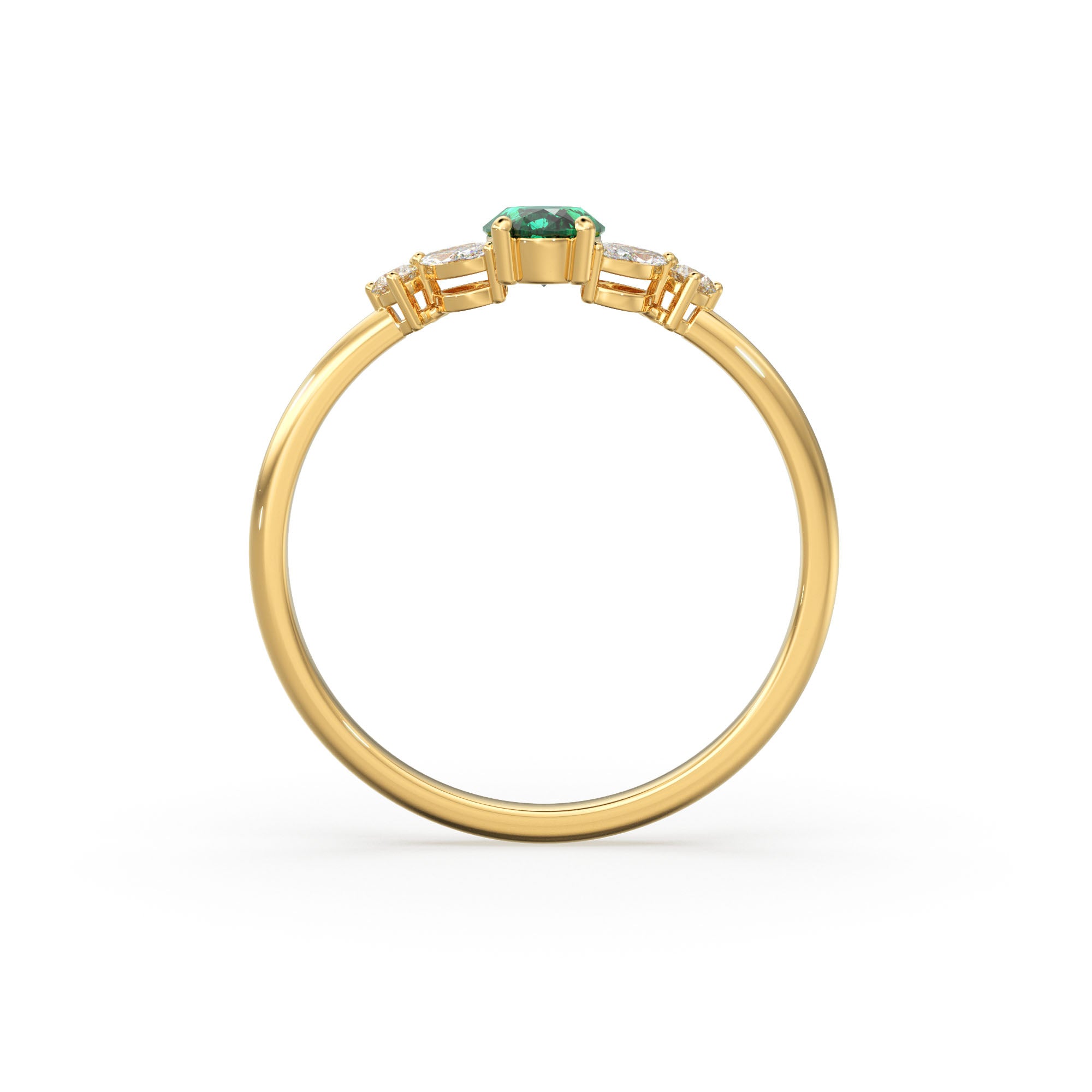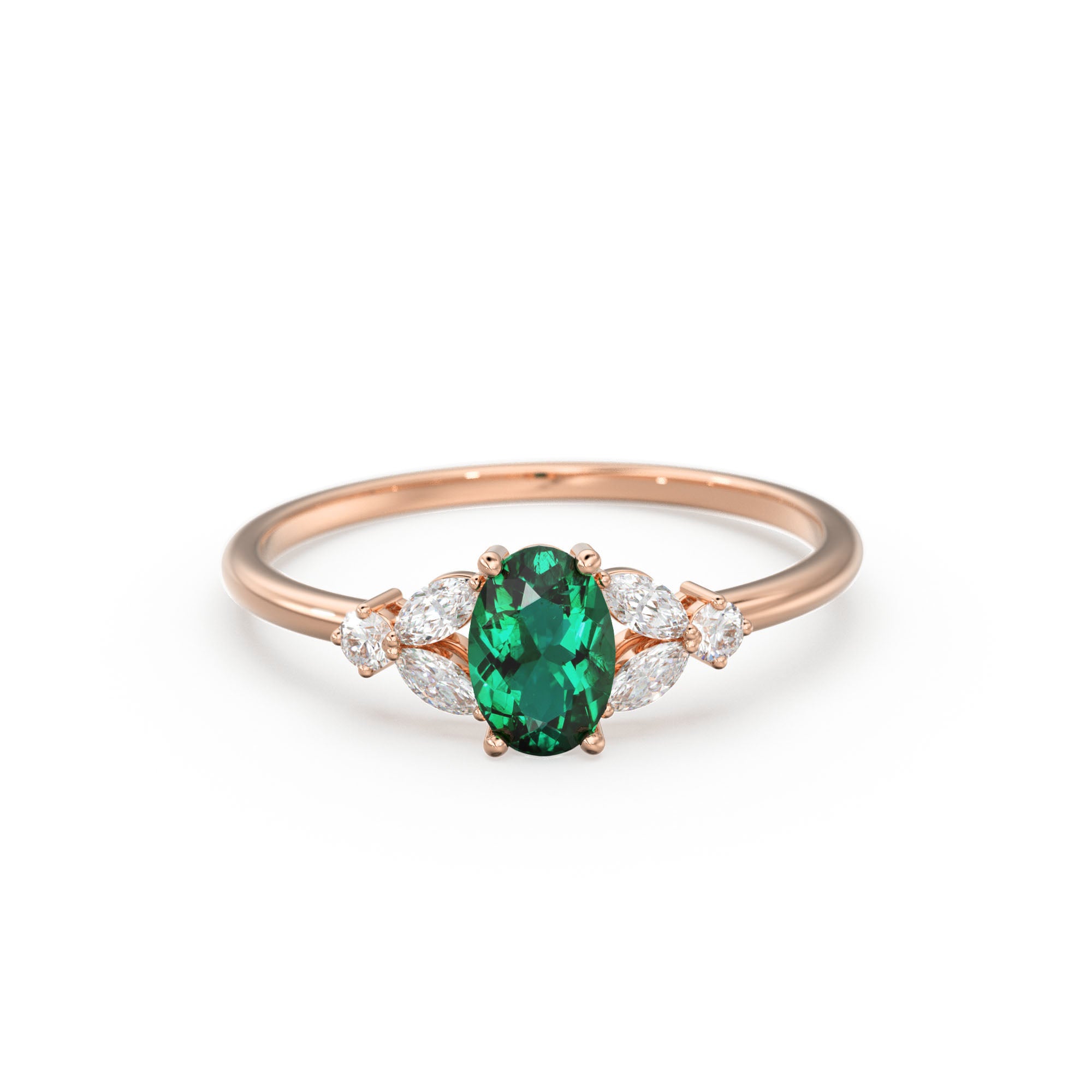 Genuine Emerald Engagement Ring in 14k Gold/ Natural Emerald Diamond Ring Available in Gold, Rose Gold...