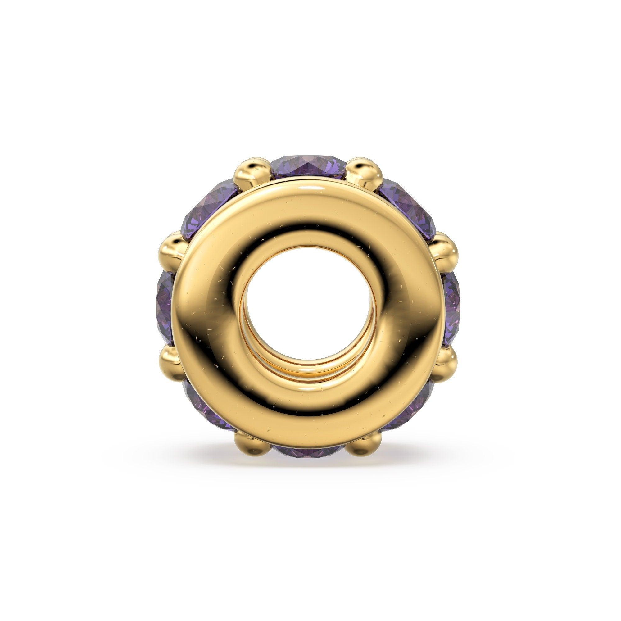 18k Solid Yellow Gold 5mm Purple Amethyst Eternity Rondelle Wheel Bead