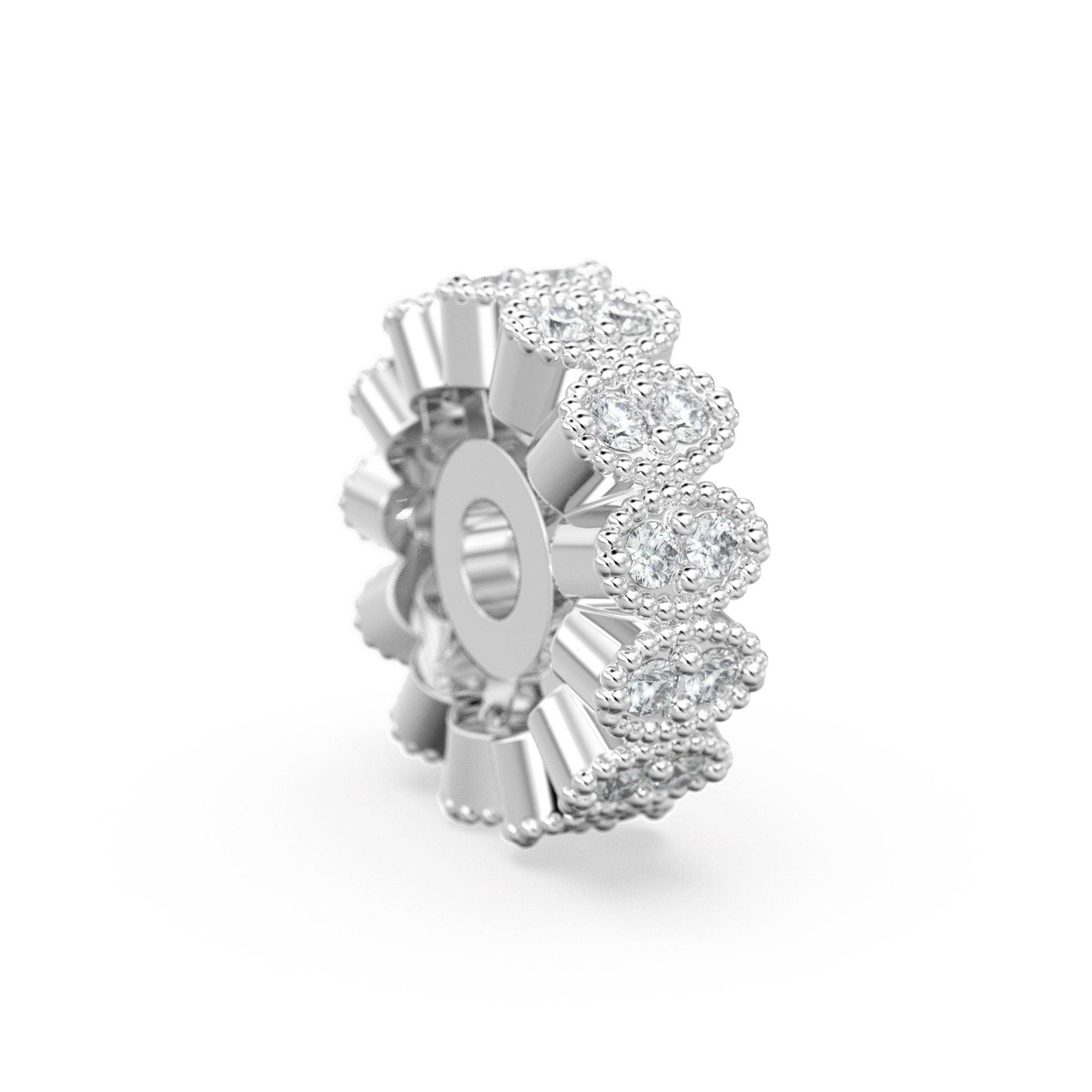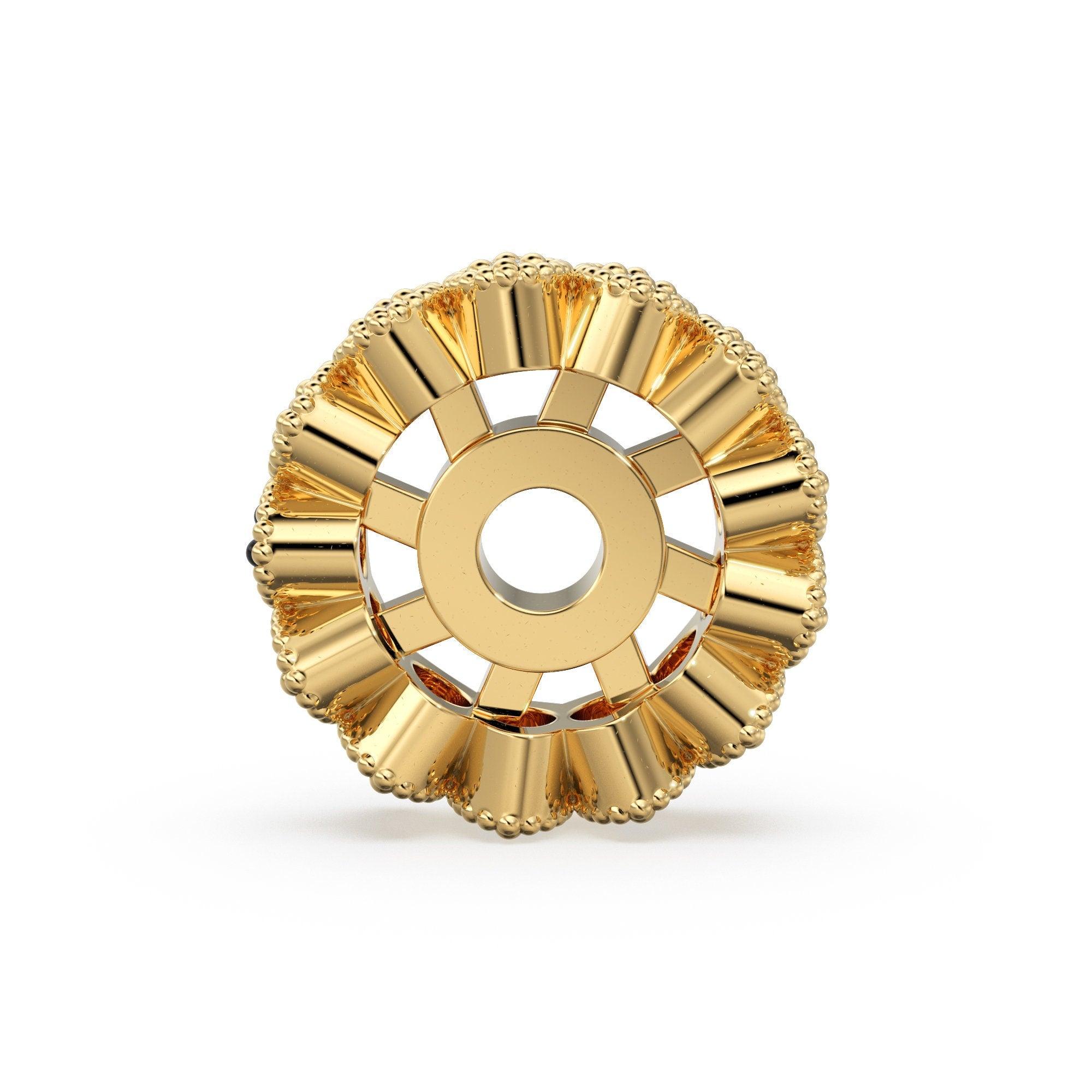 Designer Diamond Cluster Solid Gold Beads / 9mm Diamond Eternity Rondelle Wheel Beads / Oval Diamonds 14k 18k Gold Tyre Finding