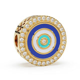 Enamel and Diamond Studded Big Hole Pandora Style 14k 18k Solid Gold Designer Fancy Spacer Bead Finding 12mm