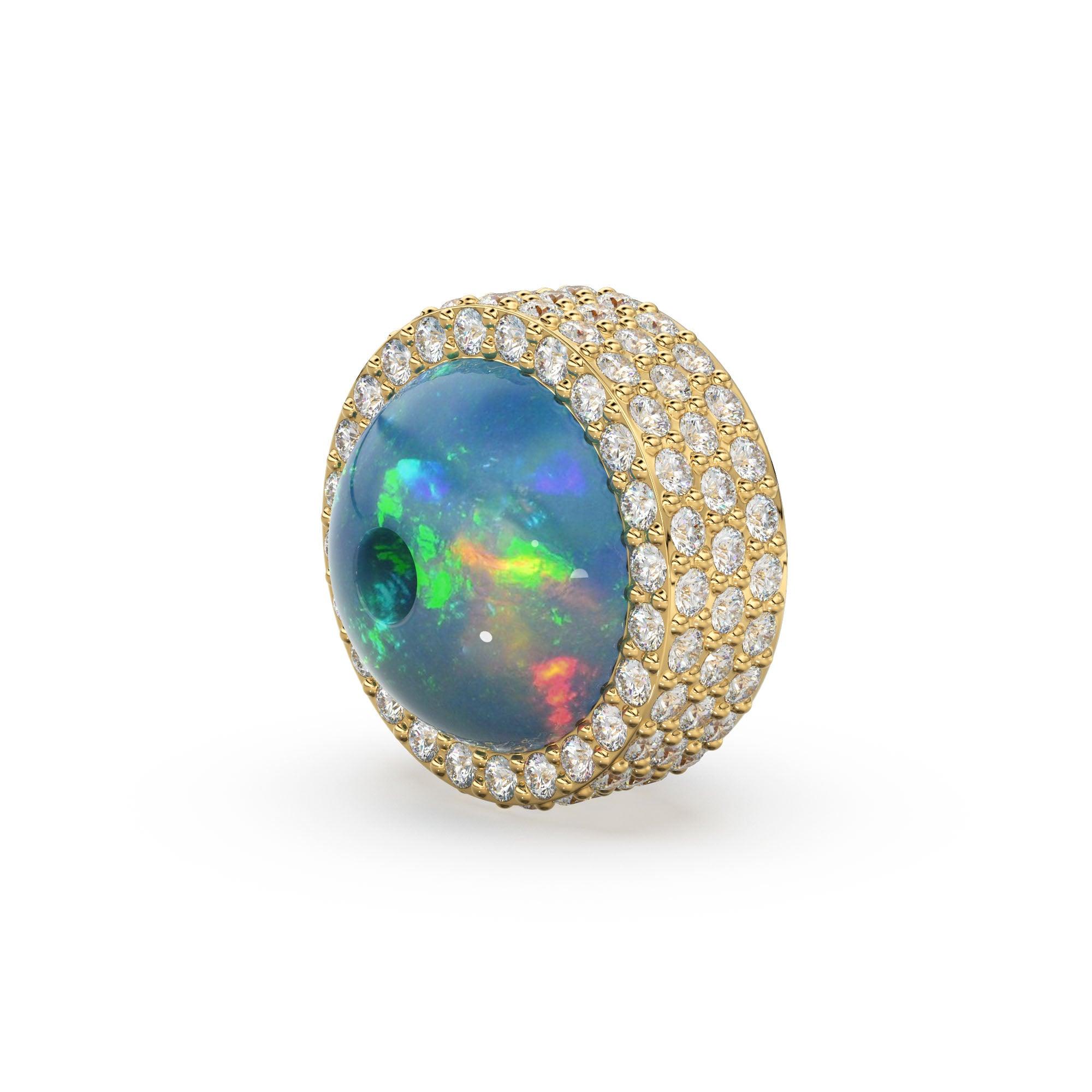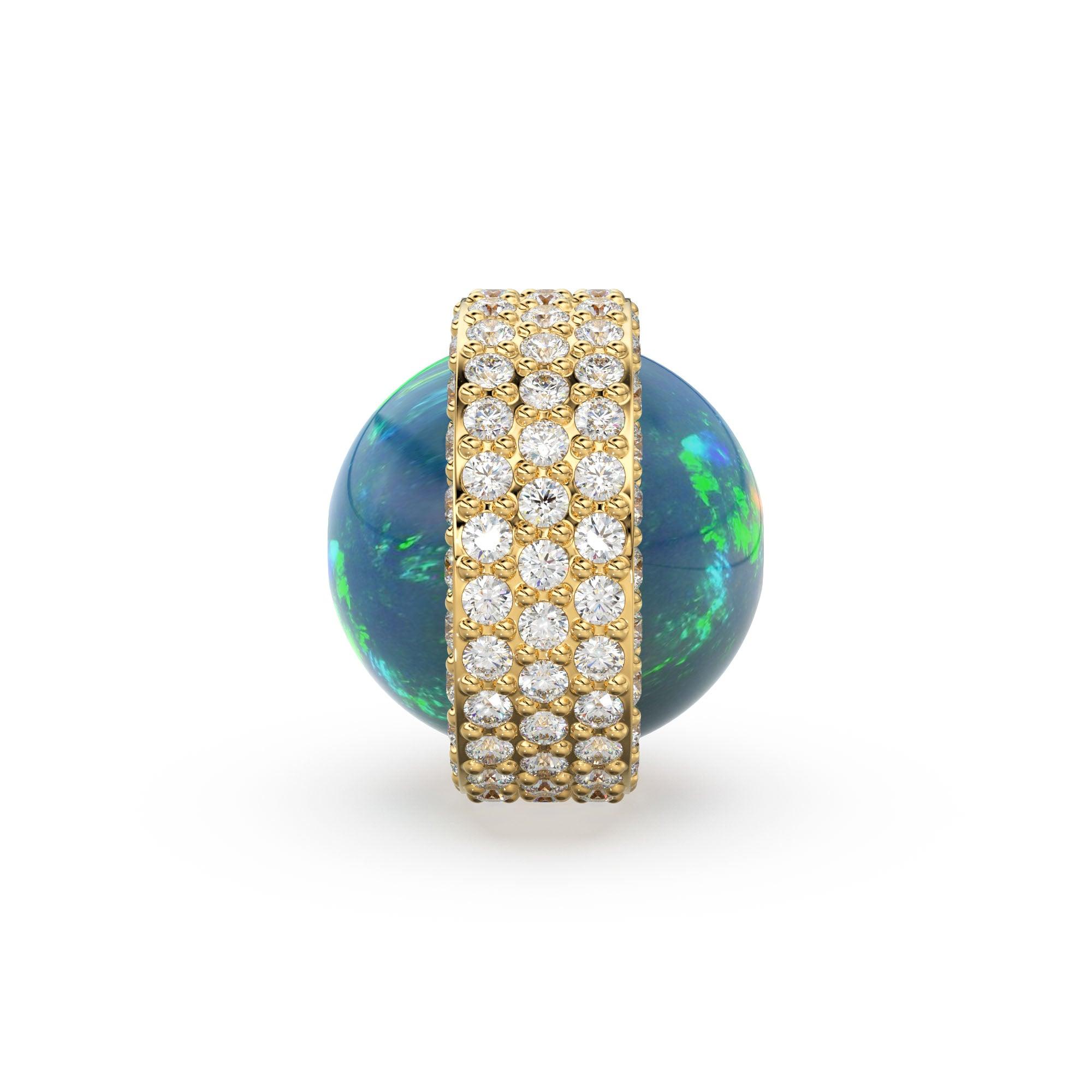 Lapis Lazuli or Ethiopian Opal Pave set diamond studded bead spacer finding. Super Luxurious that would make your project exceptionally luxe! Stamped "14k or 18k"!