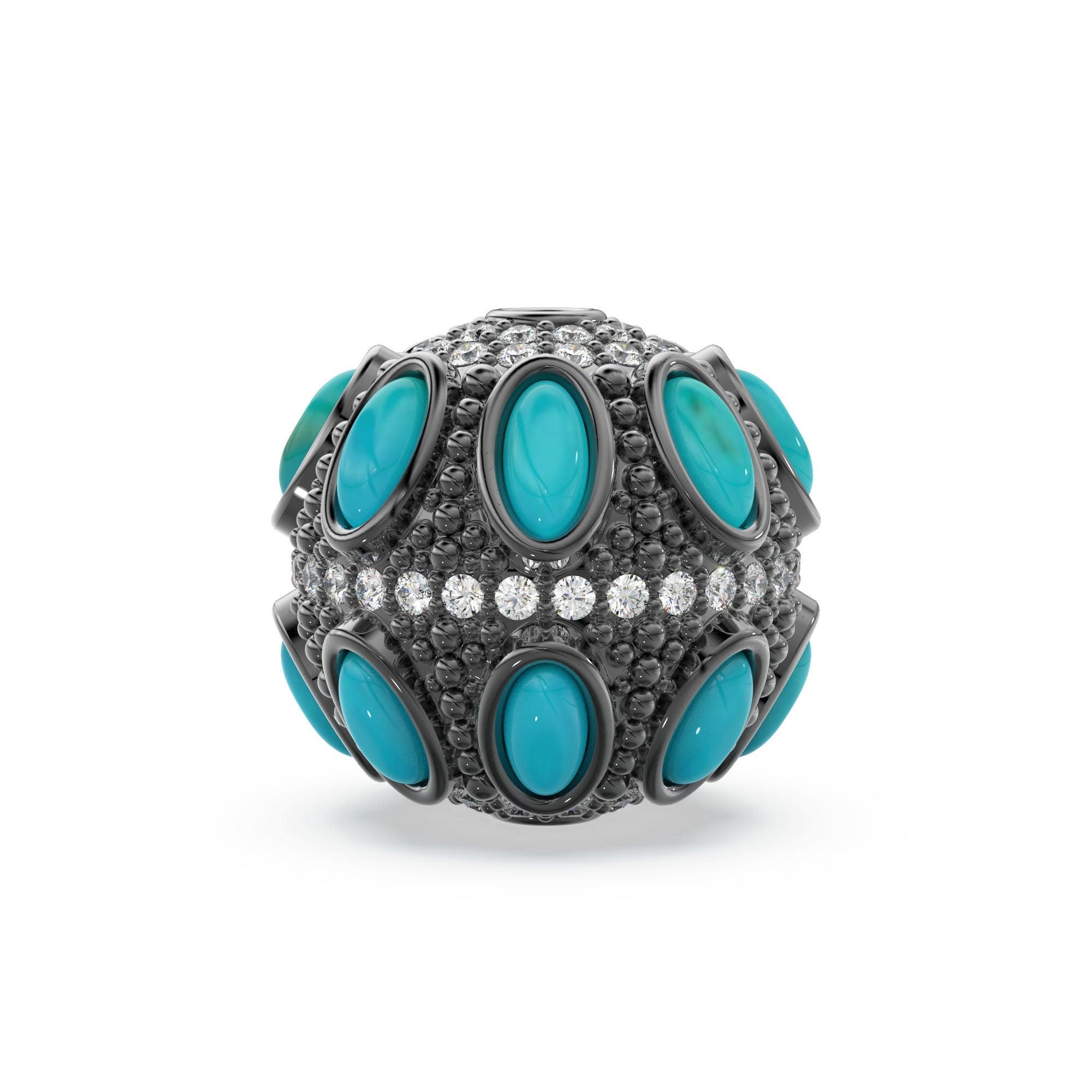Thank you for coming in! 14k 18k Tribal look designer turquoise and diamond studded bead spacer,...