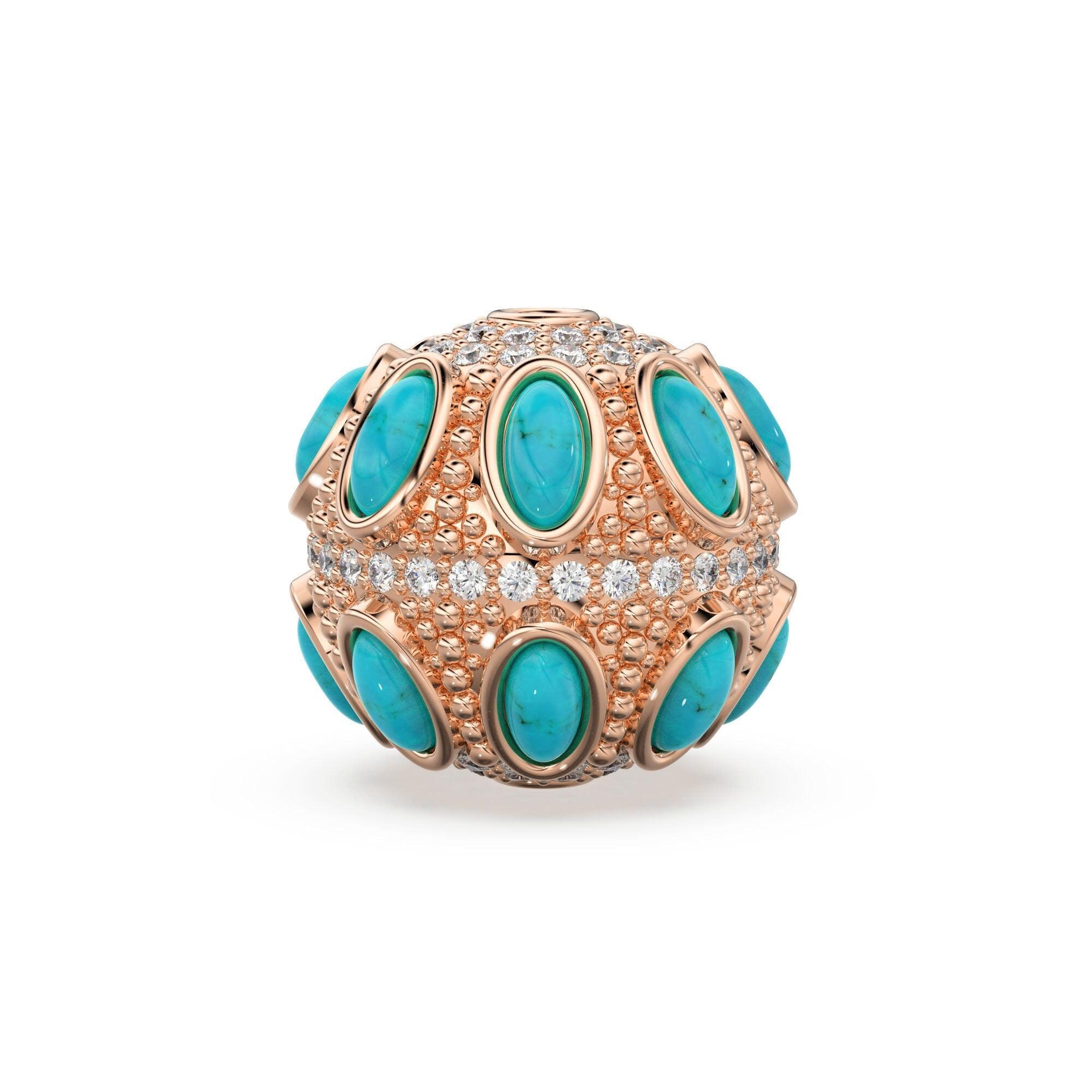 Thank you for coming in! 14k 18k Tribal look designer turquoise and diamond studded bead spacer, luxurious finding for you high end gold jewelry! Stamped "14k" or 18k!