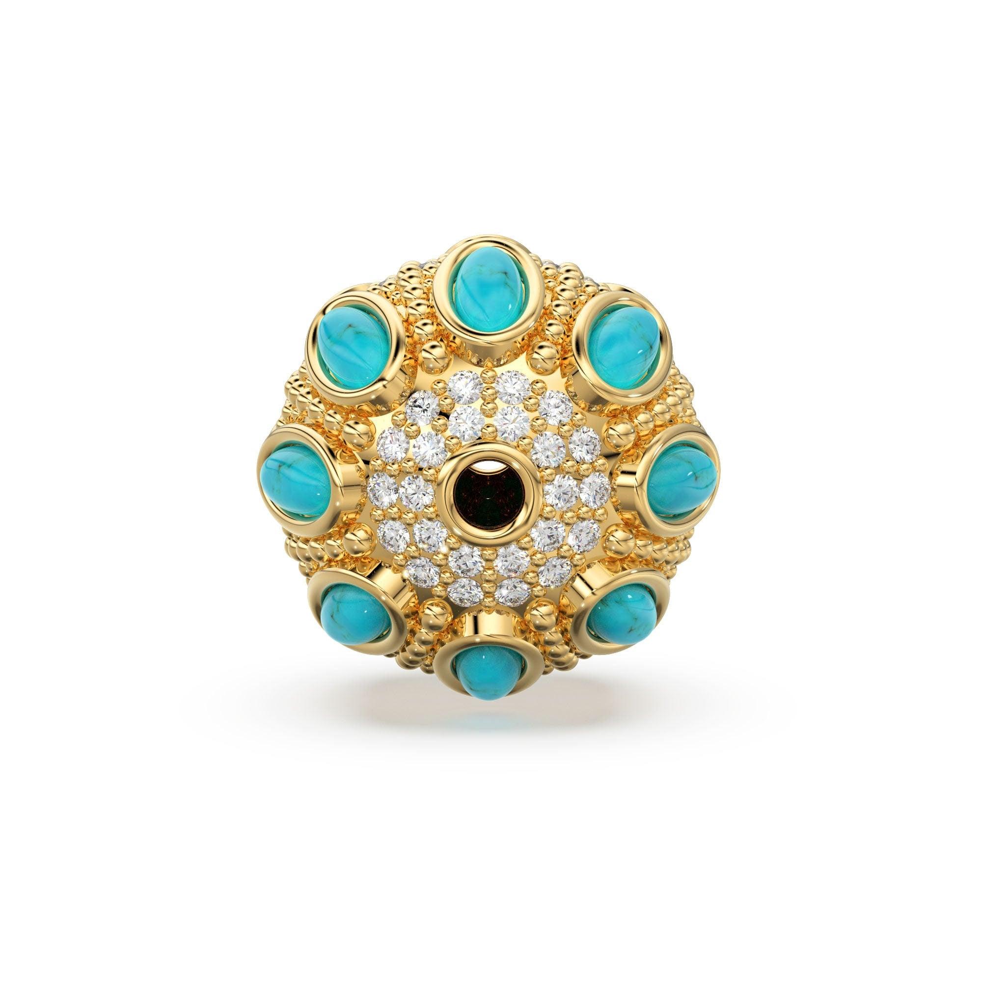 Turquoise and Diamond 14k 18k Solid Gold Tribal Look Spacer Finding Bead, Diamond and Turquoise Bead, Diamond Finding, Solid Gold Bead 13mm