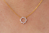 Diamond Necklace / Diamond Sun Necklace / 14k Gold Sun Circle Pendant / Sun Jewelry / Gift For Her / Cluster Diamond Necklace