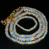 Ready to Wear - Natural Ethiopian Opal Smooth Rondelle Loose Gemstone Beads Sterling Silver Vermeil Necklace 20 inches, 3-5mm