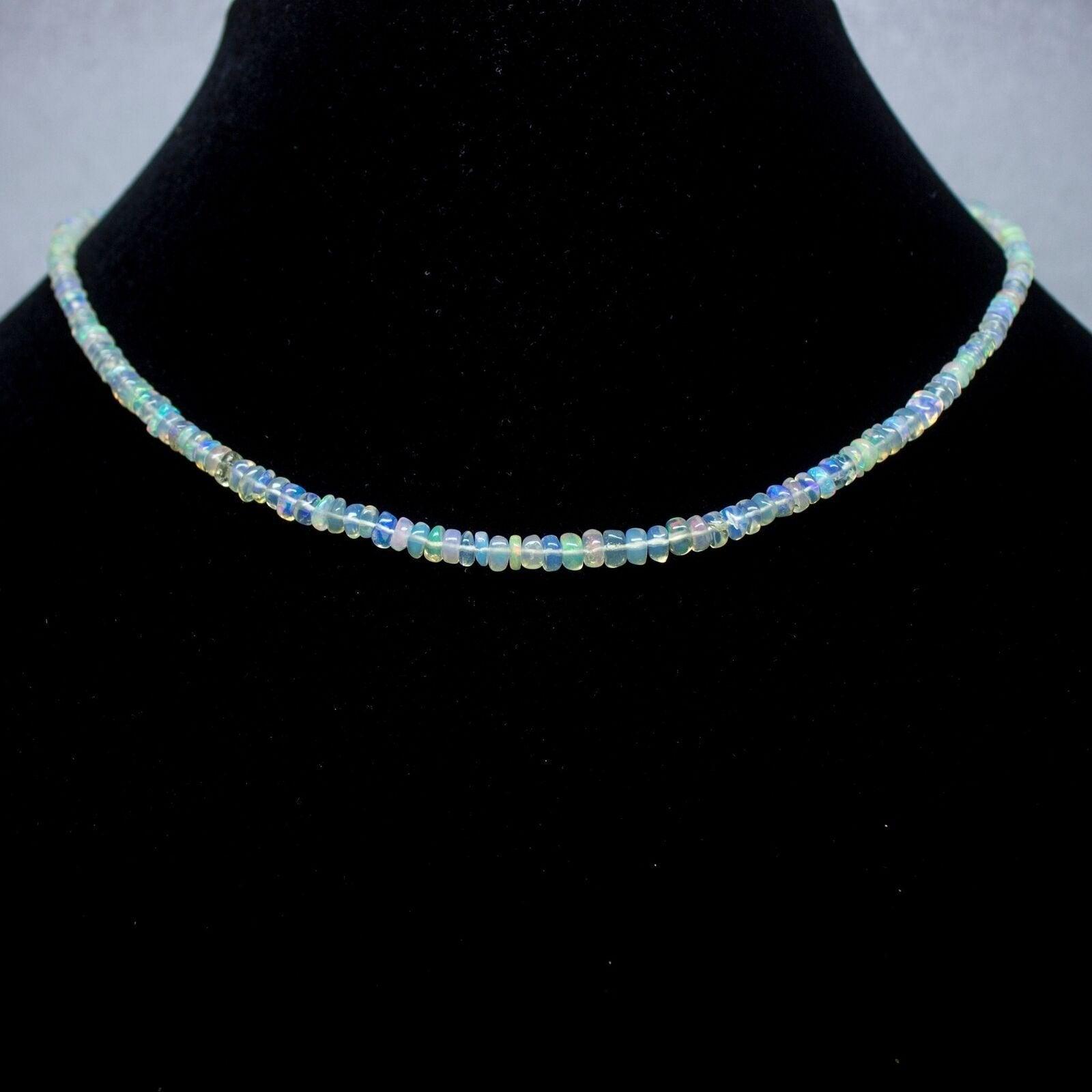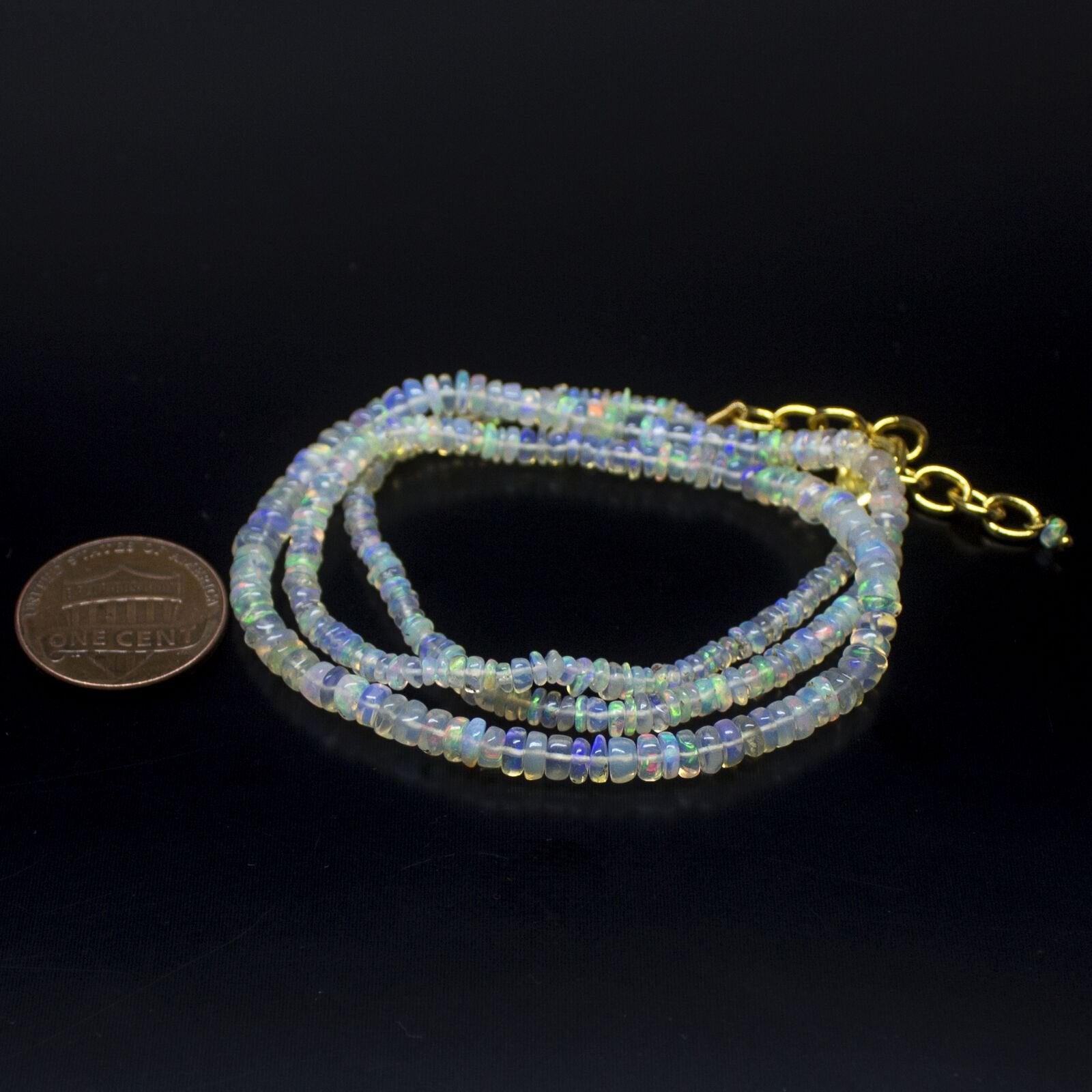 Ethiopian Opal Smooth Rondelle Beads Gold Vermeil Necklace 19" 3mm 4mm