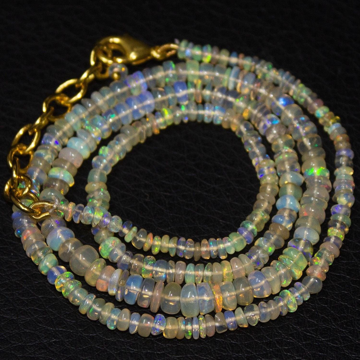 Natural Ethiopian Welo Opal Smooth Rondelle Gold Vermeil Necklace 20" 3mm 5mm