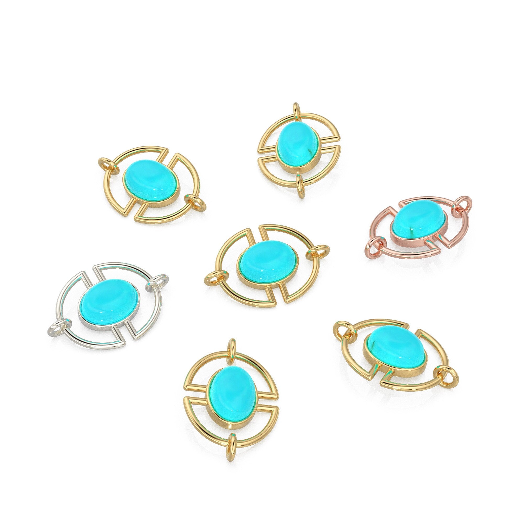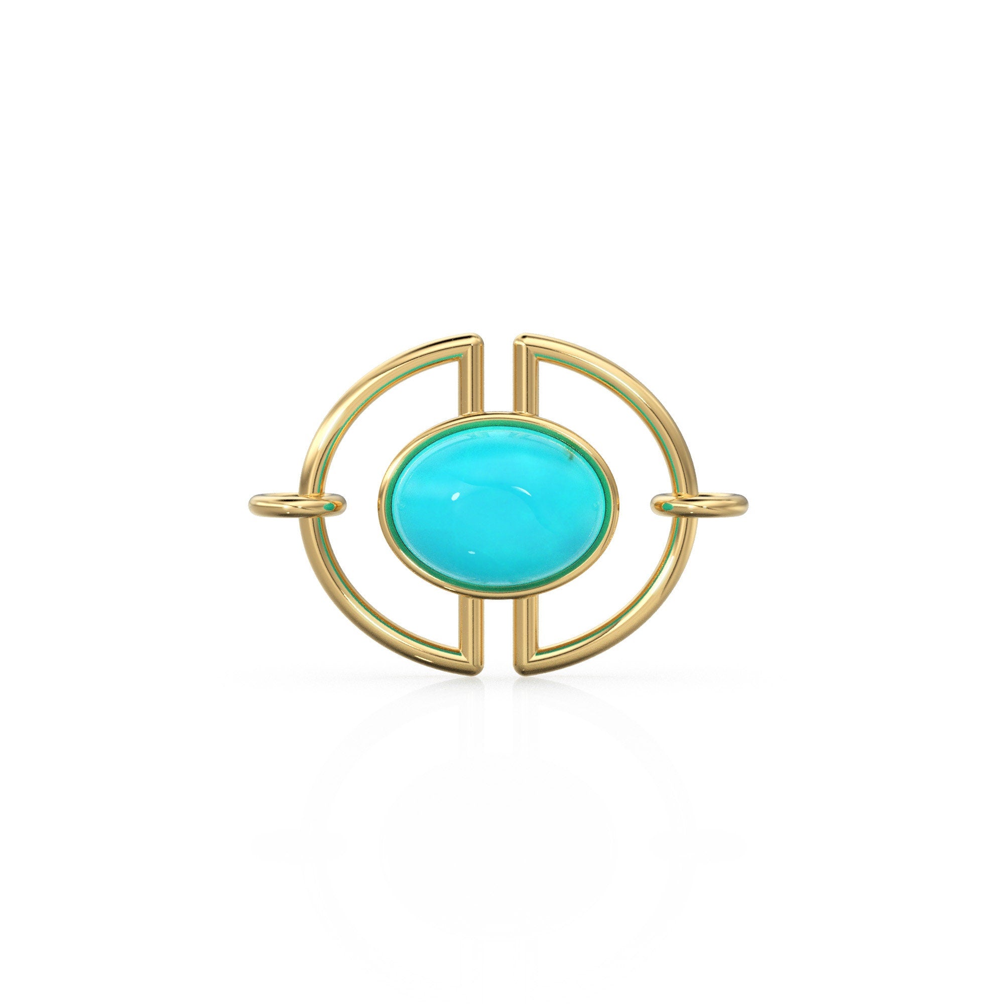 13mmx15mm 18k Solid Gold Gemstone Connector With 8mm Sleeping Beauty Blue Turquoise Cabochon Bezel St Patricks Day
