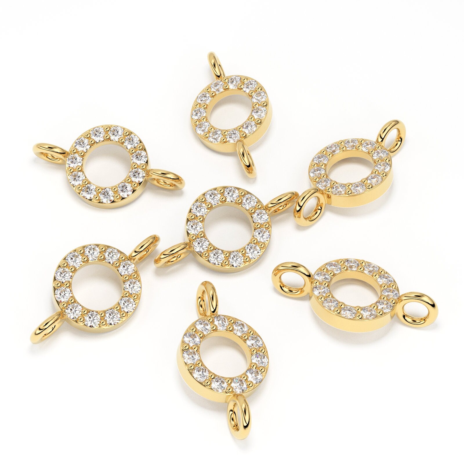 14k Solid Gold Diamond Round Connector / Dainty Brilliant Diamond Connector / Diamond Spacer / Labour Day Sale St Patricks Day