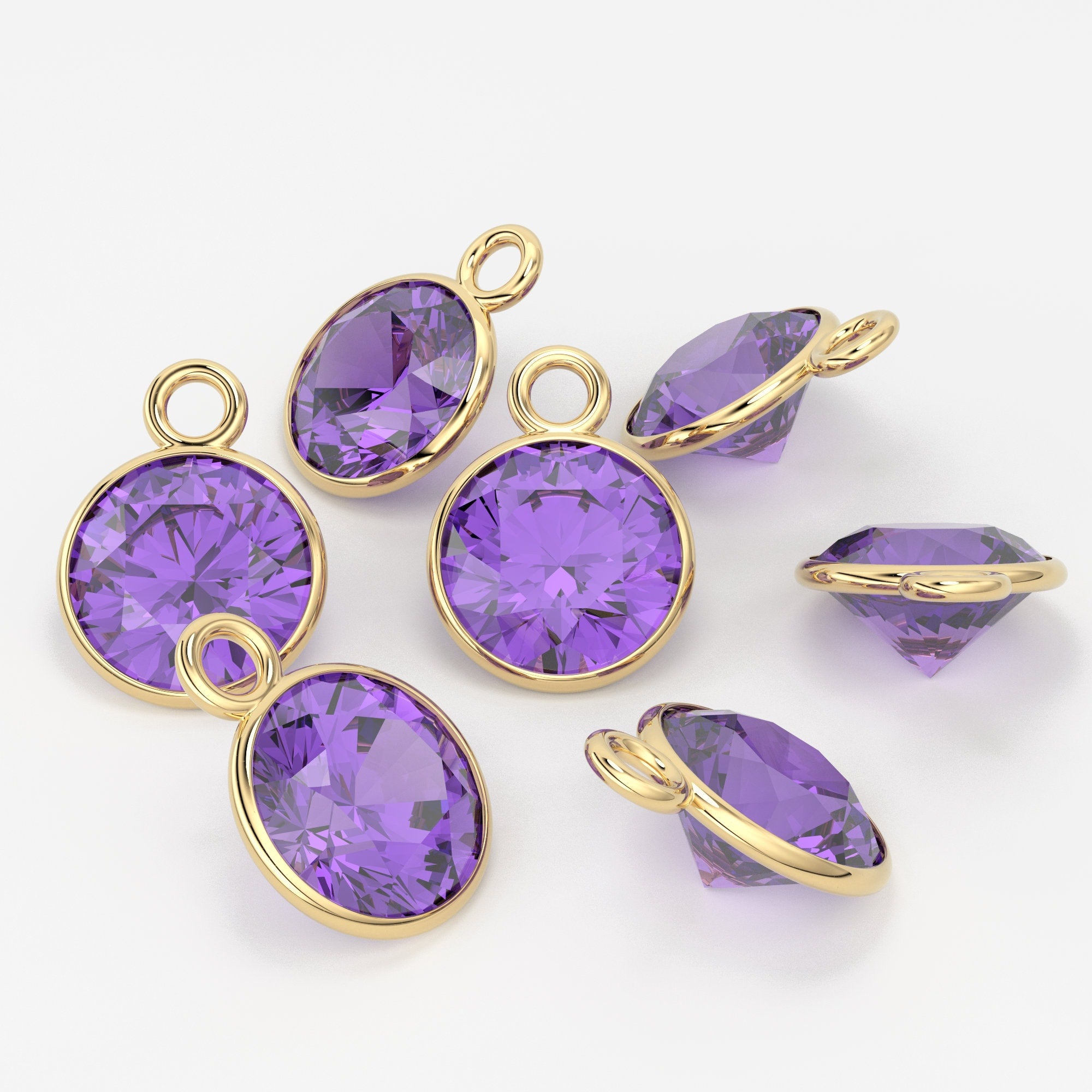 14K solid gold charm finding in natural African Amethyst.Available in 4mm, 5mm, 6mmYou'll get 1 spacer...