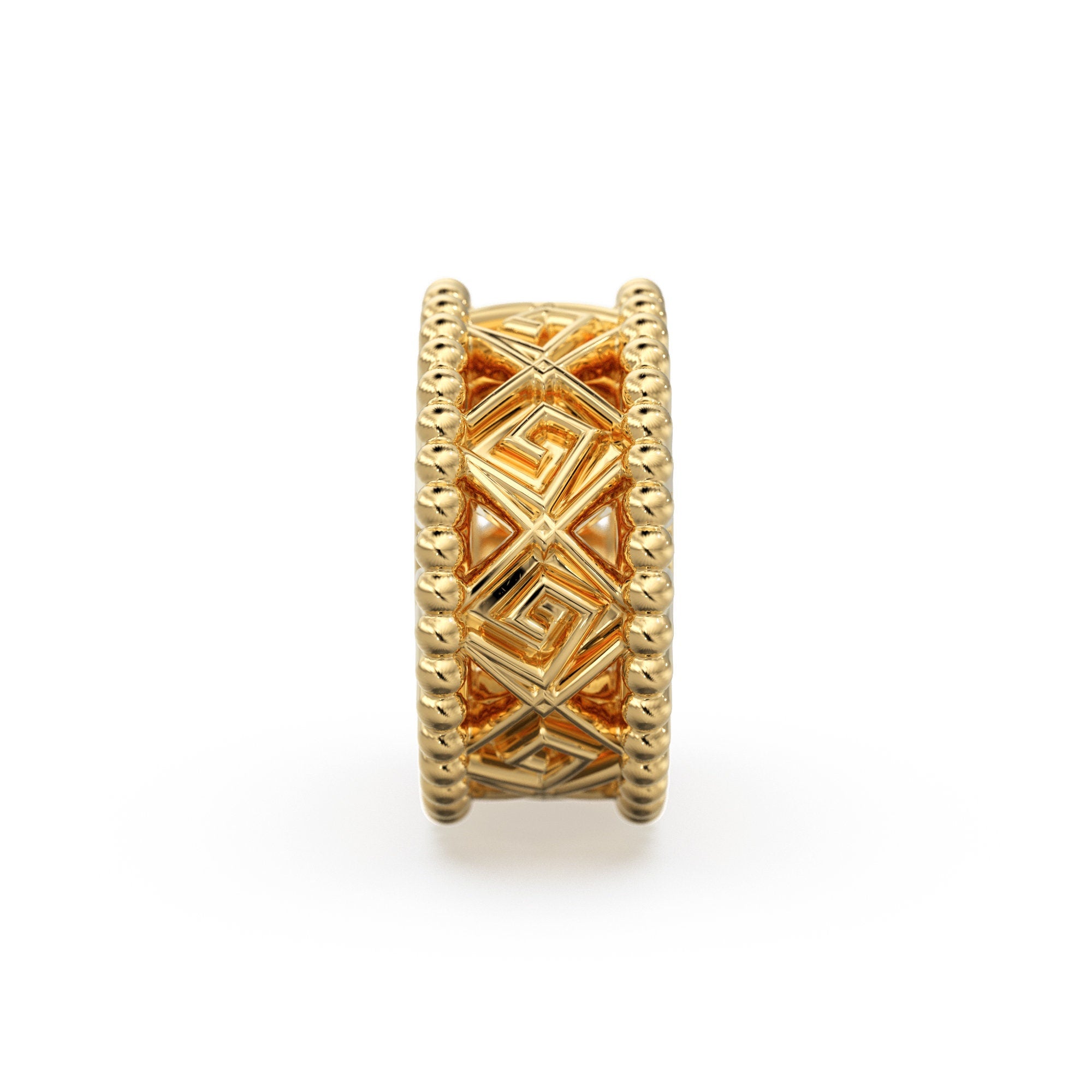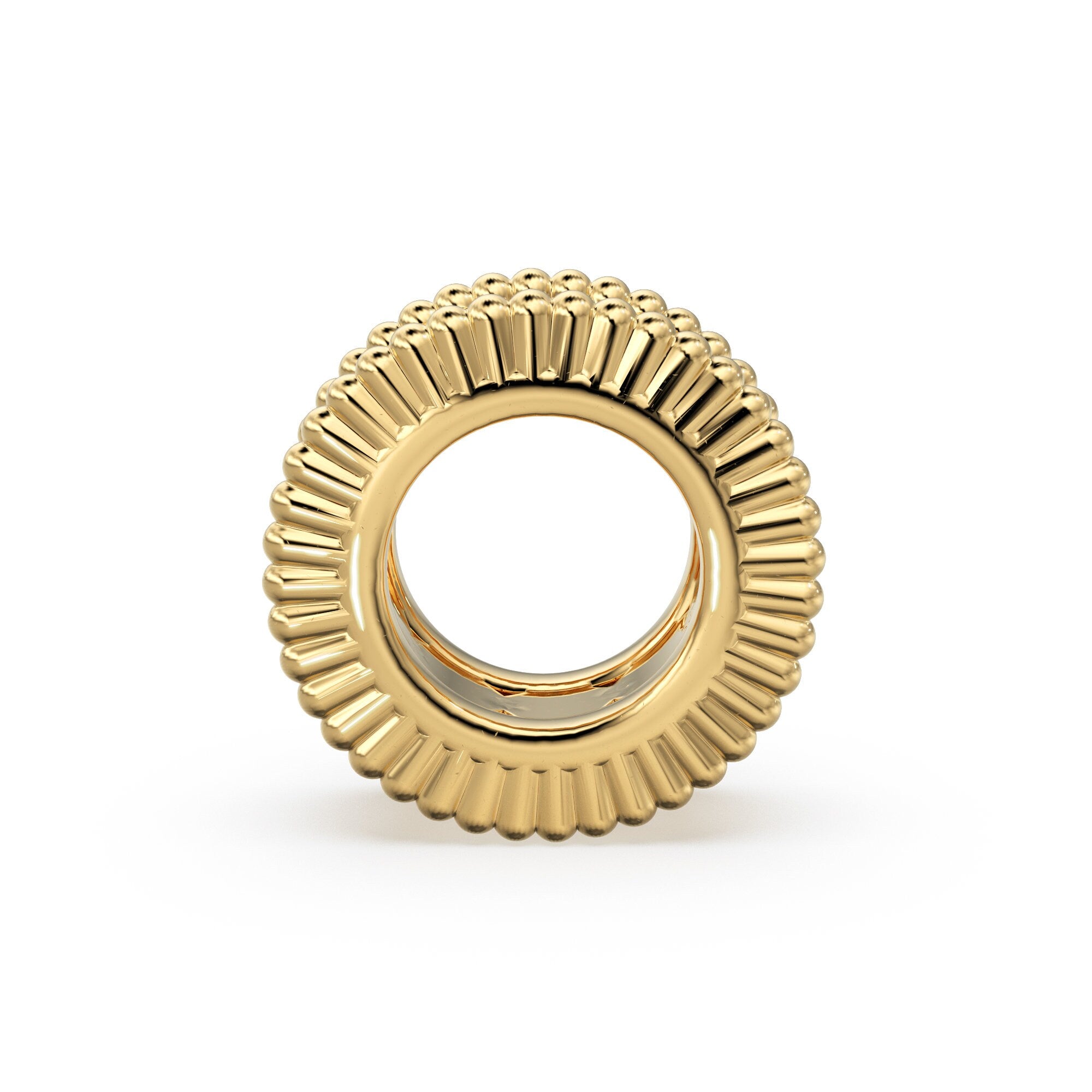 Thank you for coming in! Fancy 18K solid gold spacer with intricate patterns! Great findings for you high carat designer gold jewelry! These beads have a large 4.2mm hole diameter.