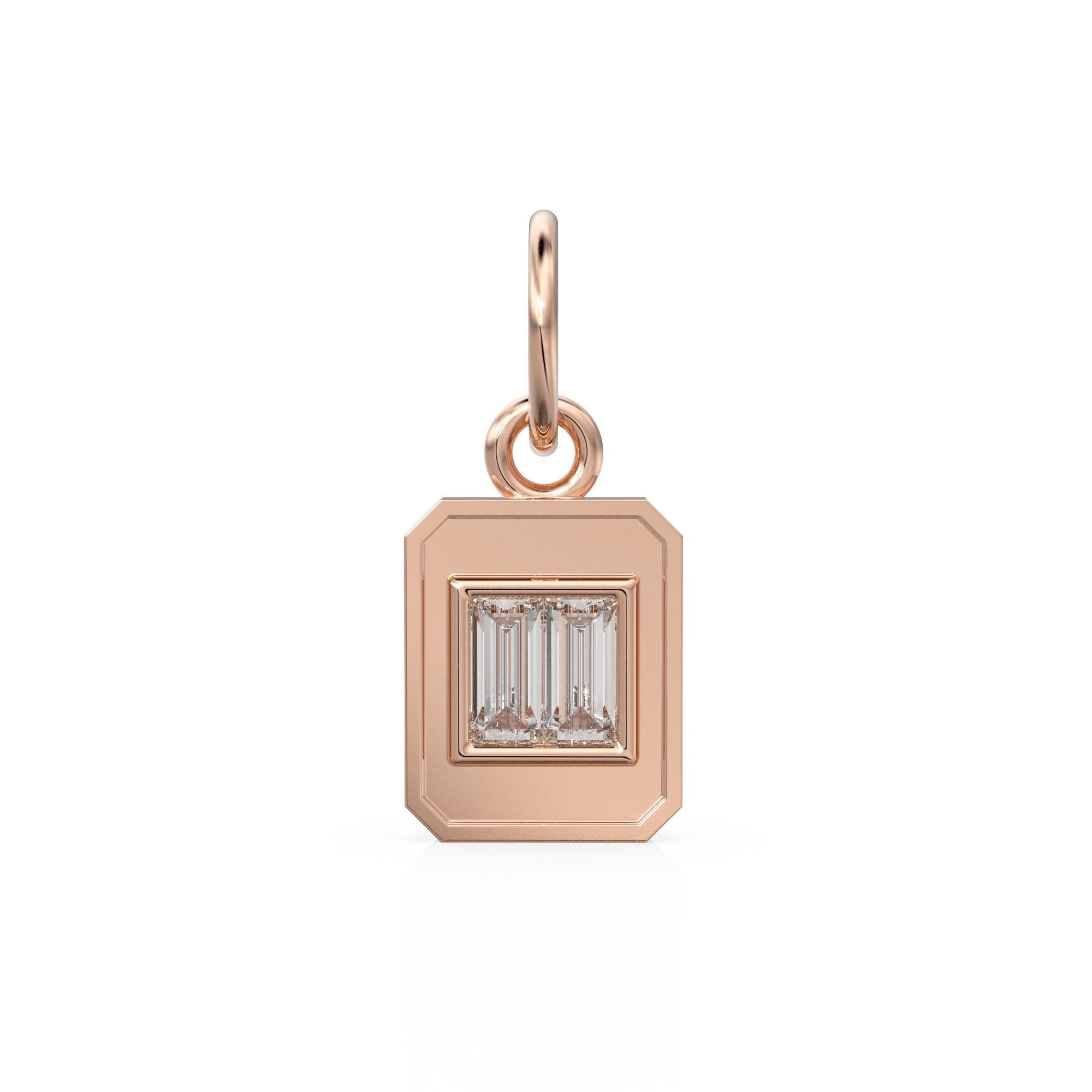 2 Baguette Diamond Bar Pendant / 18k Solid Gold Diamond Charm / Baguette Diamond 14k Gold Pendant / Emerald Cut Diamond Charm / Sale