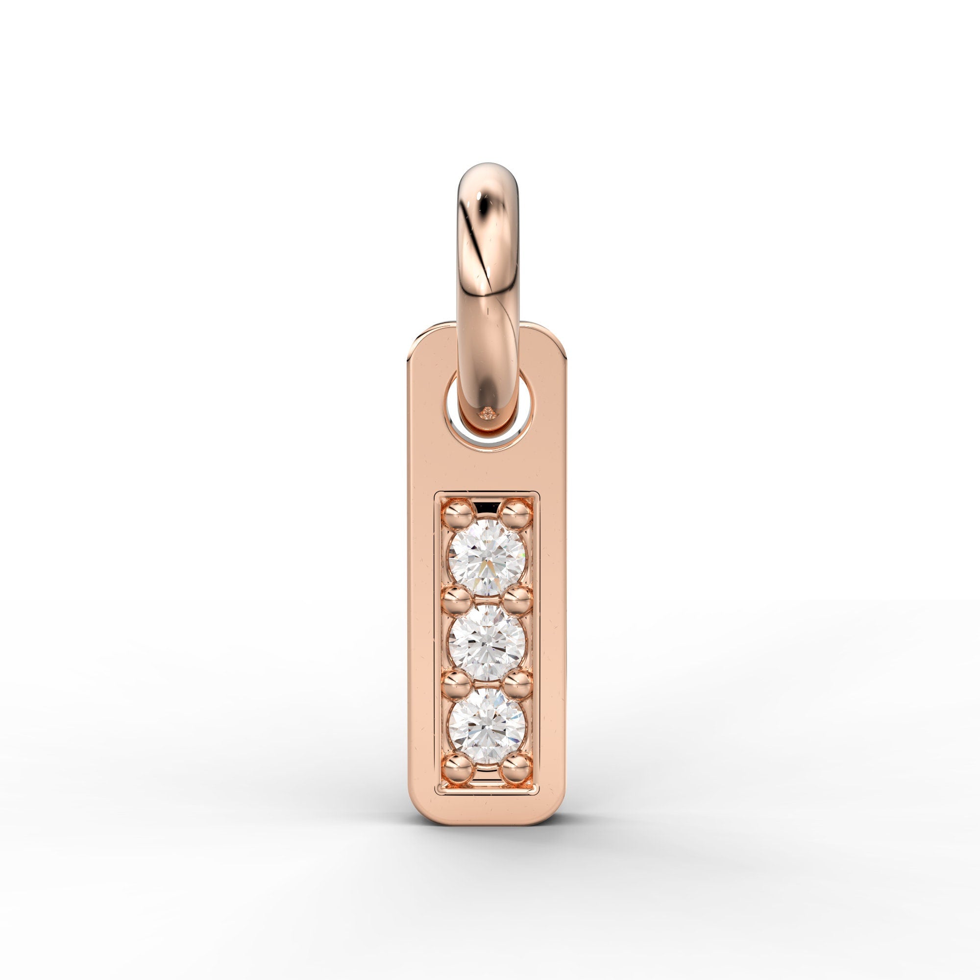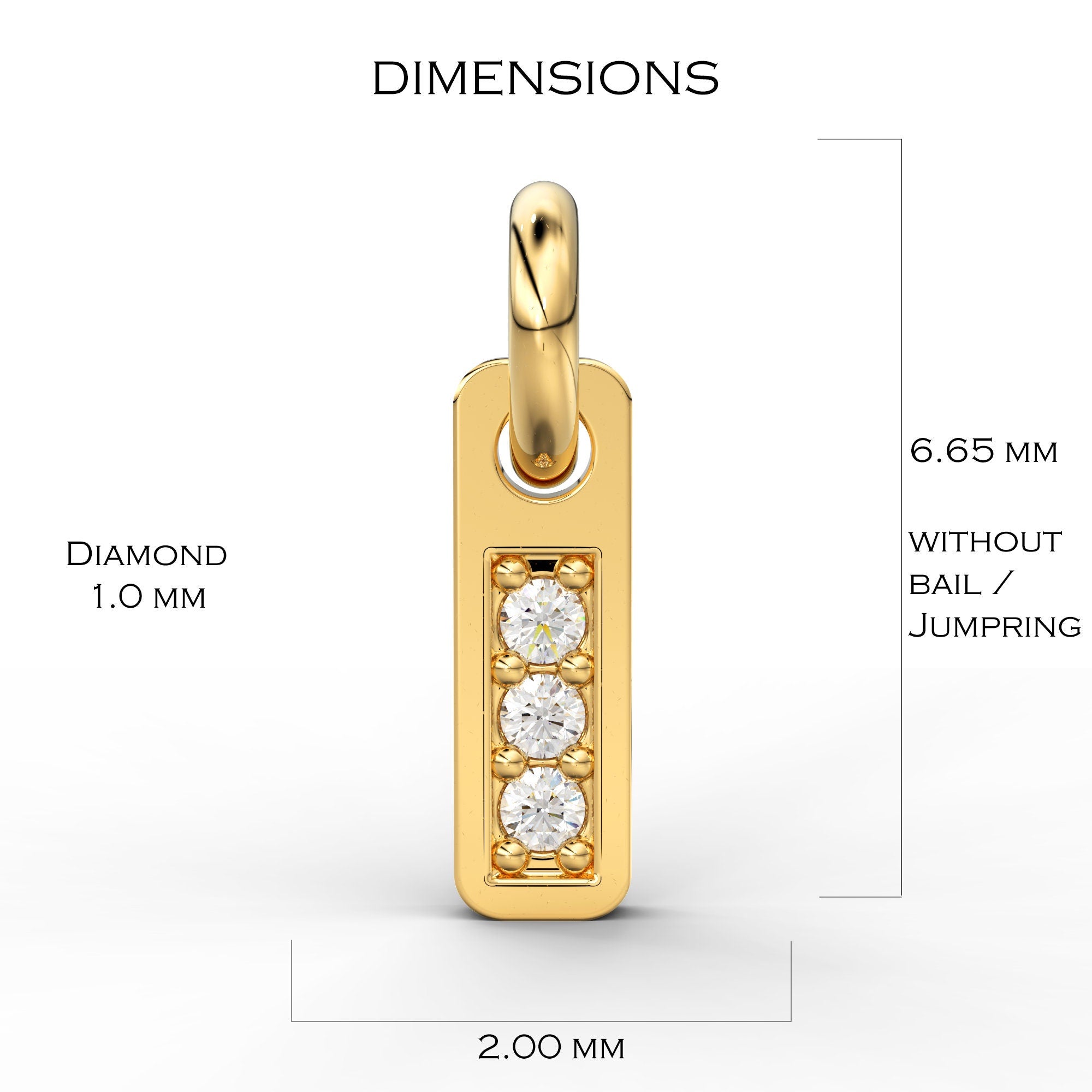 3 Stone Tine Diamond Rectangular Bar Solid Yellow Gold Charm Pendant, high end gold charm finding...