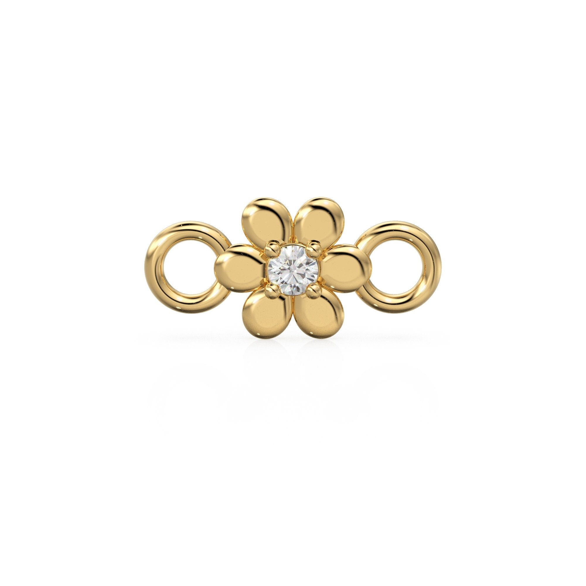 6x12mm Flower 18k Solid Yellow Gold Brilliant Diamond Connector Spacer Finding St Patricks Day