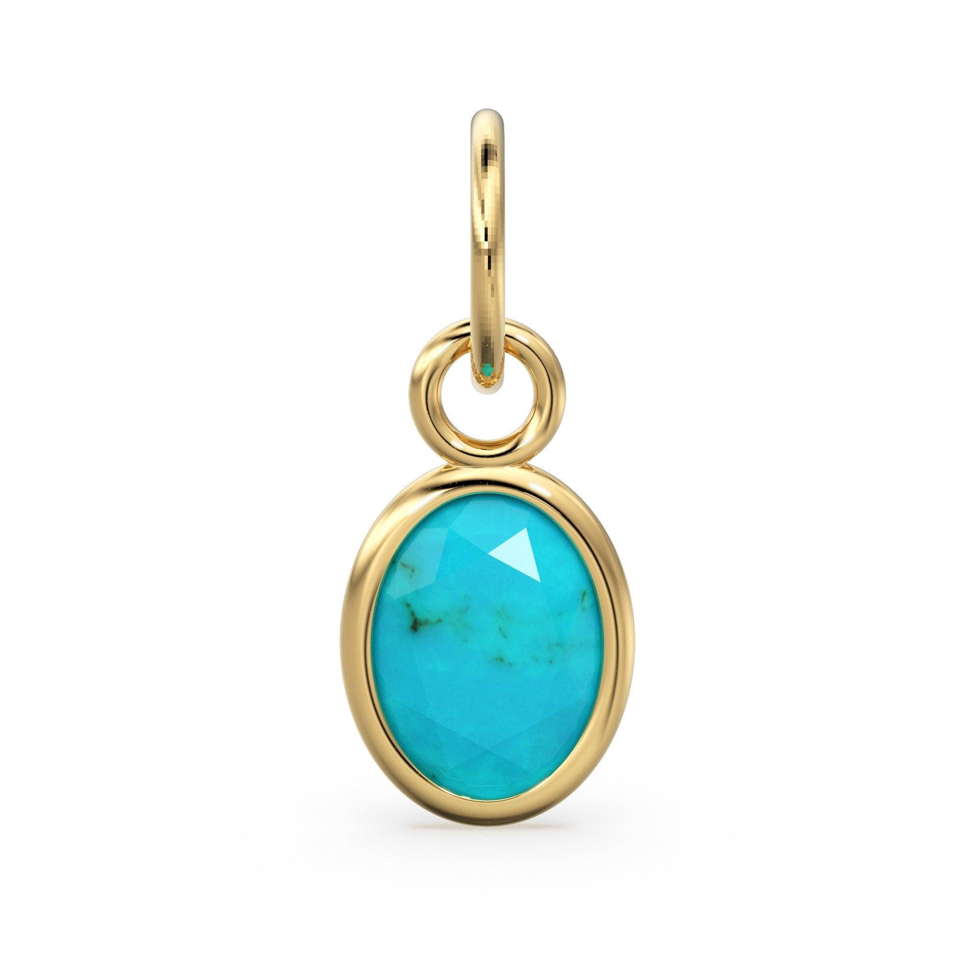 Arizona Turquoise Oval Solid Gold Charm / Natural Blue Gemstone Handmade Gold Pendant / 1pc 14k...