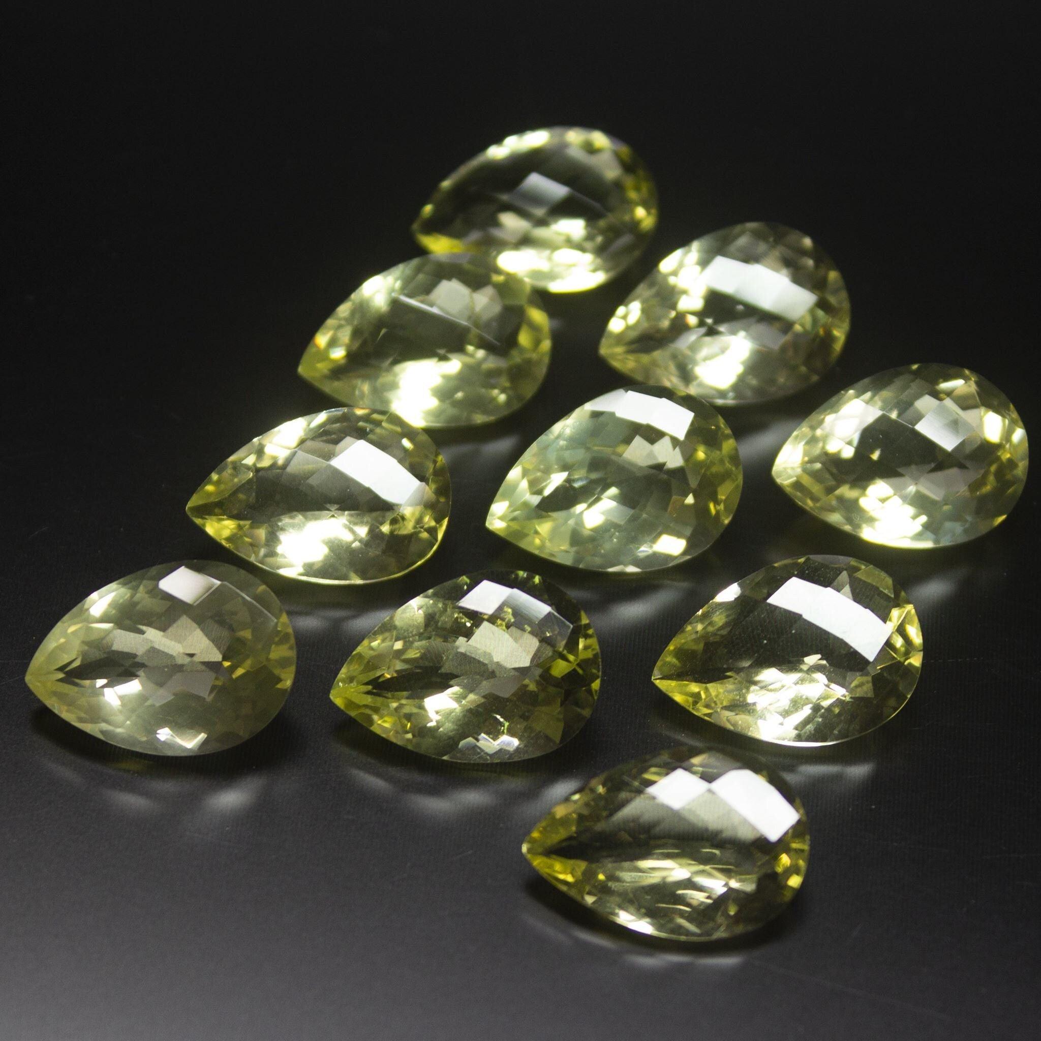 Natural Lemon Quartz Checker Pear Drop Briolette Loose Gemstone Lot 10pc 18mm