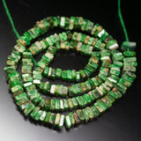 16 inch, 4-7mm, Natural Green Tsavorite Smooth Heishi Square Shape Gemstone Beads