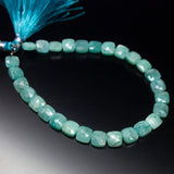 8 inches, 7mm, Natural Blue Amazonite Faceted Cushion Briolette Beads