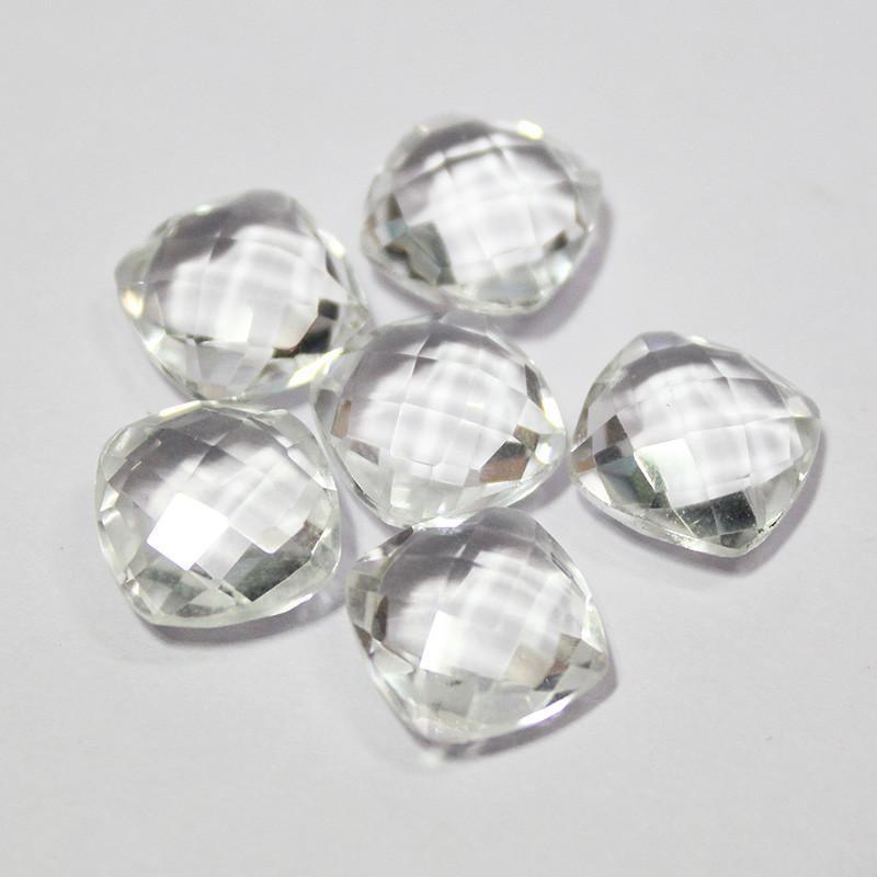 White Quartz Crystal Faceted Cushion Gemstone Beads Matching Pair 6pc 10mm Materials: White Quartz Crystal, Quartz,...