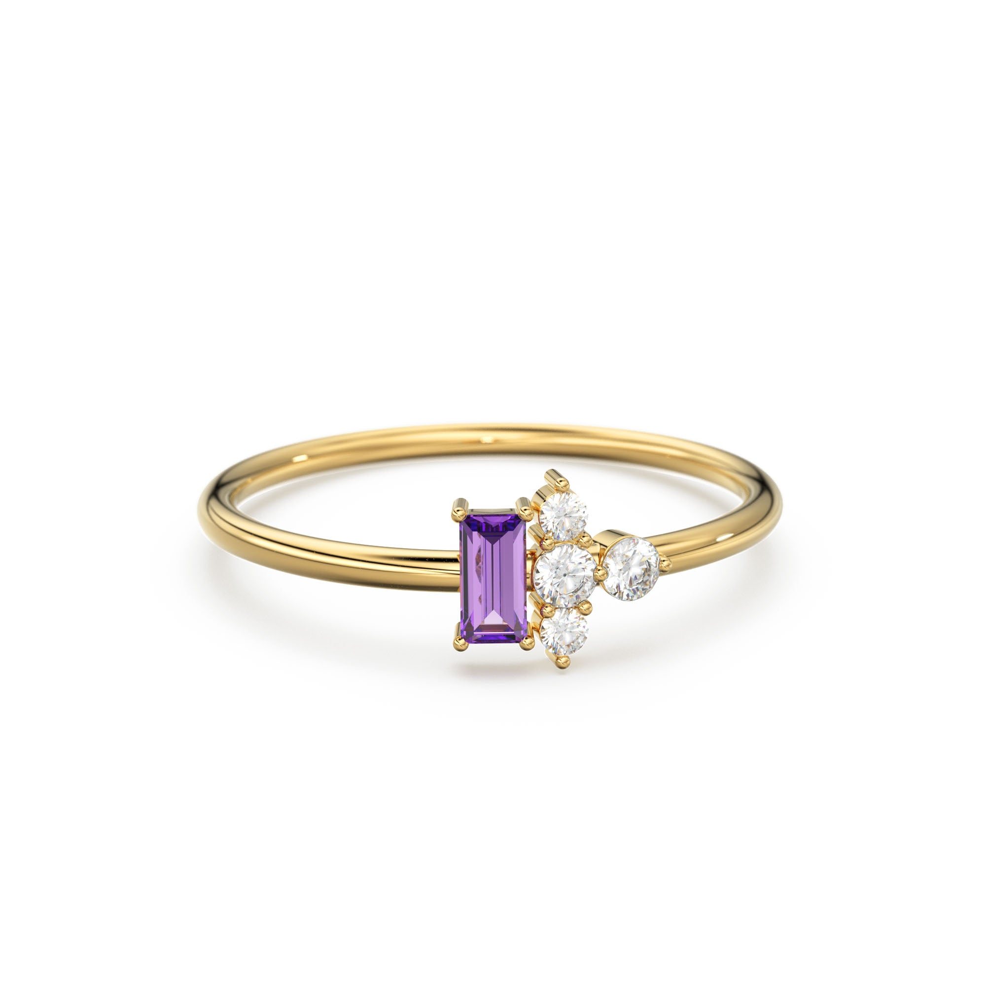 Rose Gold Genuine Amethyst and Diamond Ring / 14k Rose Gold Ring / Baguette Cut Amethyst...