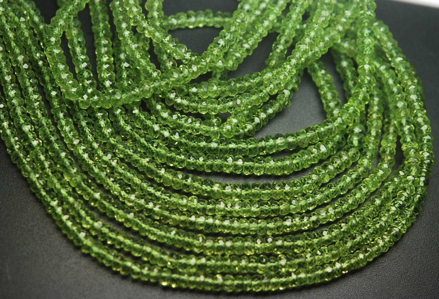 2 Strands x 13 Inches AAA Quality, Natural Peridot Faceted Rondelle Gemstone Loose Beads 3mm / Olivine Beads Strand
