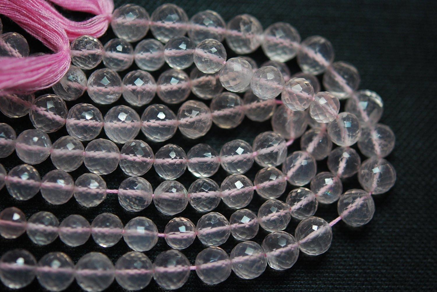7 Inch Strand, Finest Quality, Rose Quartz Micro Faceted Round Balls Beads, 8mm Size Materials: Quartz....