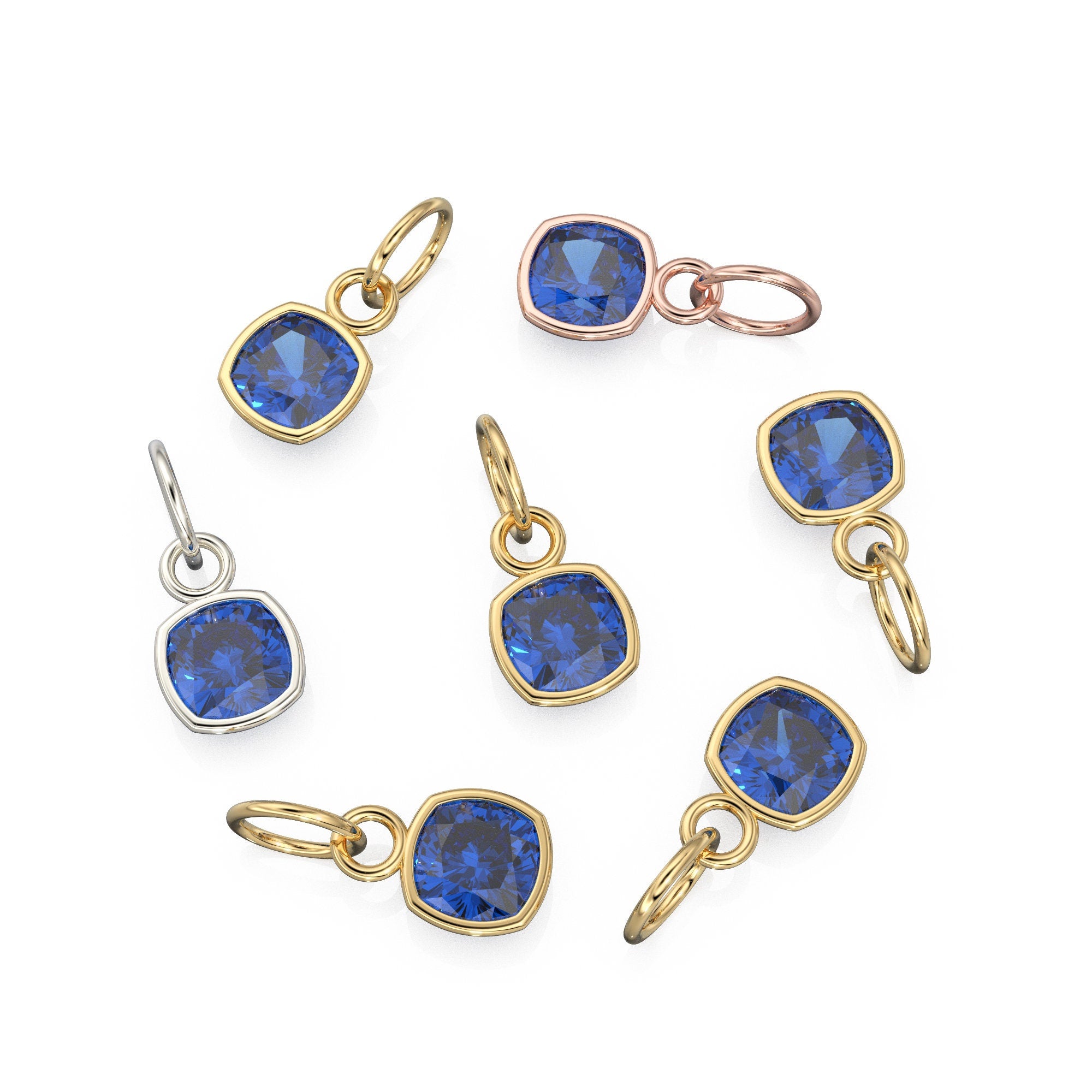 Blue Sapphire Gemstone Charms 14k Yellow Solid Gold Charm Pendant Blue Cushion Gemstone Bezel 18K Gold Jewelry Finding