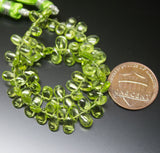 7 inches, 6-7mm, Arizona Green Peridot Smooth Pear Drop Briolette Loose Gemstone Beads Strand