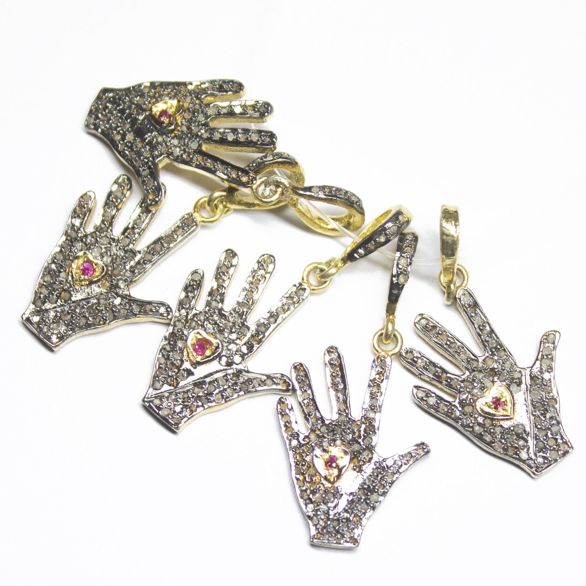 1pc Pave Diamond Hand Palm Charm 925 Sterling Silver Gold Vermeil Charm Pendant 32mmx15mm