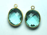 925 Sterling Vermeil Silver Green Amethyst Quartz Faceted Pear Shape 24K Gold Plated Pendant, 2 Piece Of 18mm