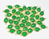 Natural Green Onyx Gold Vermeil Silver Bezel Connector Station 5pcs 17mm