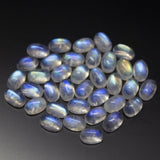 10 matching pair, 6mm, Natural Rainbow Moonstone Smooth Oval Cabochon Shape Gemstone, Moonstone