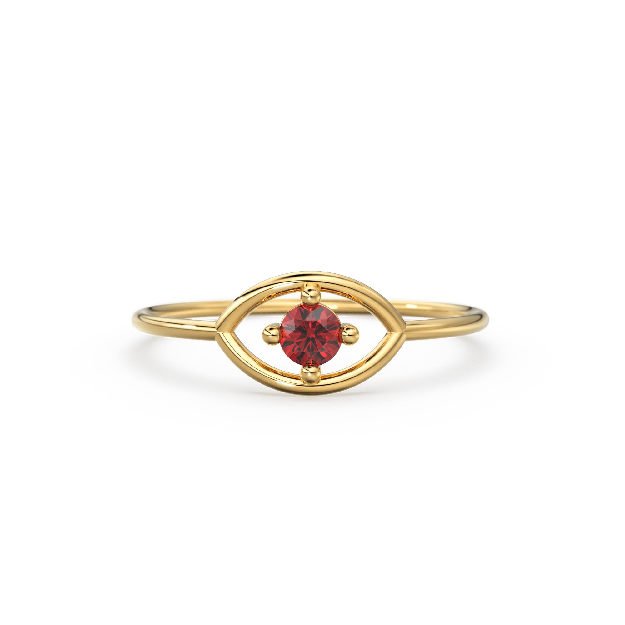 14K Gold Eye Ring / "Evil Eye" Ring / Sapphrie / Ruby Ring / June Birthstone...