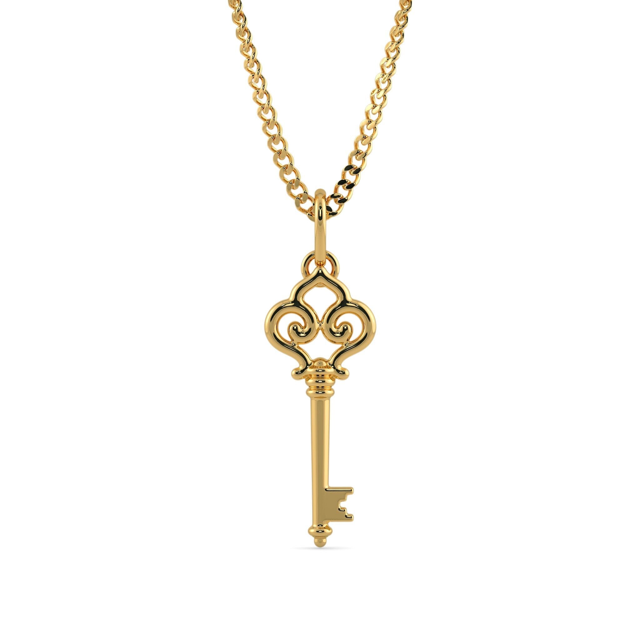 18k Solid Yellow Gold Handmade Skeleton Key Charm Pendant, Gold Pendant, Key Pendant St Patricks Day