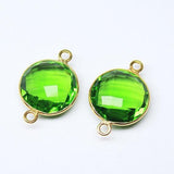 4pc, 22mm, Peridot Quartz Checker Round Briolette 925 Sterling Silver Connector, Quartz Connector