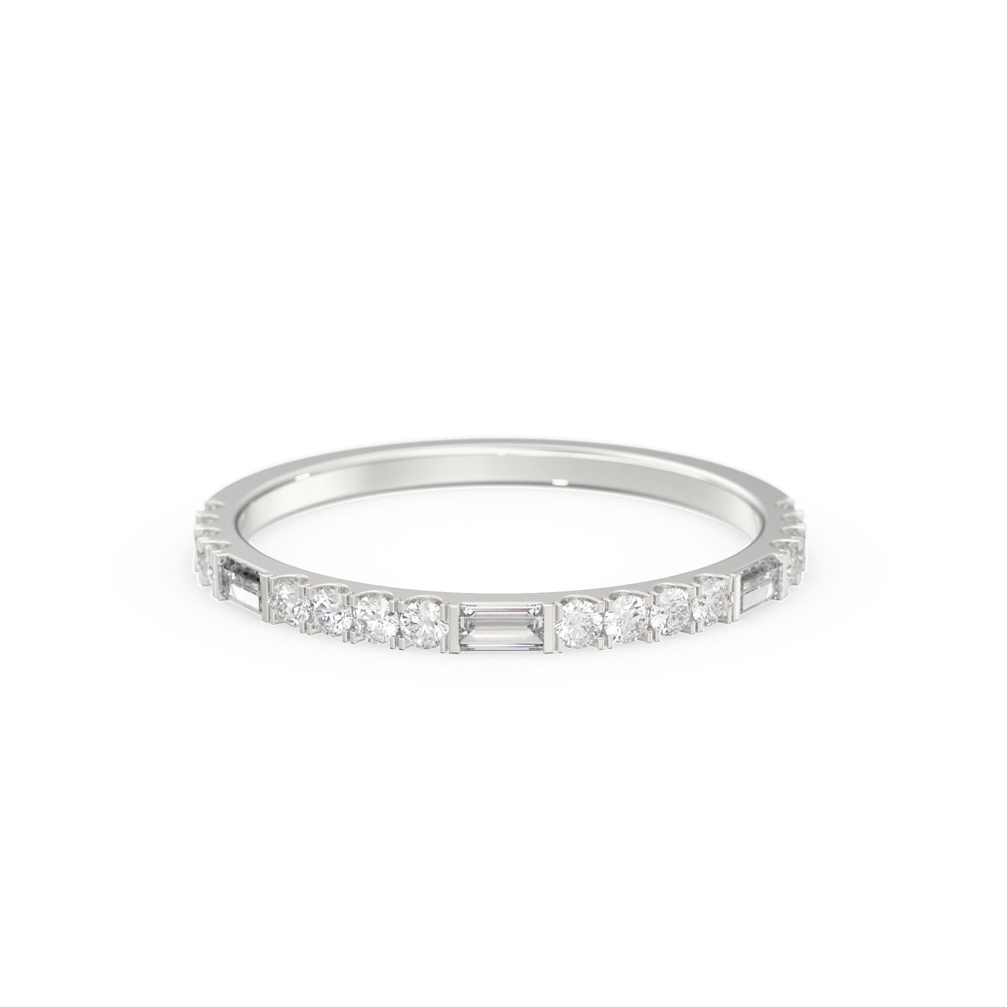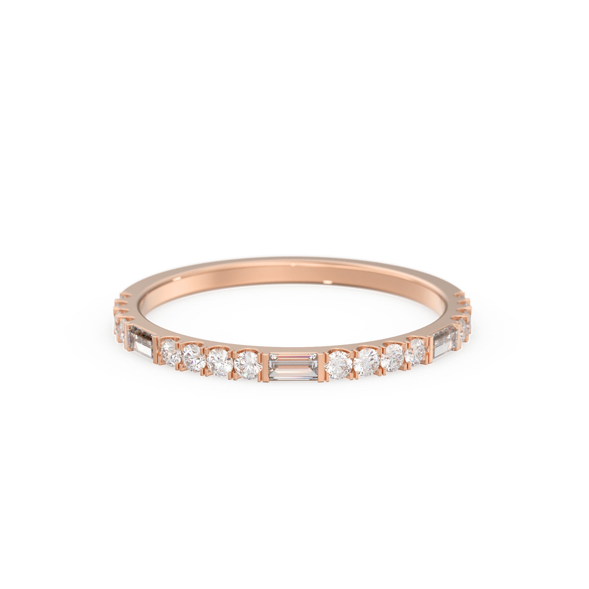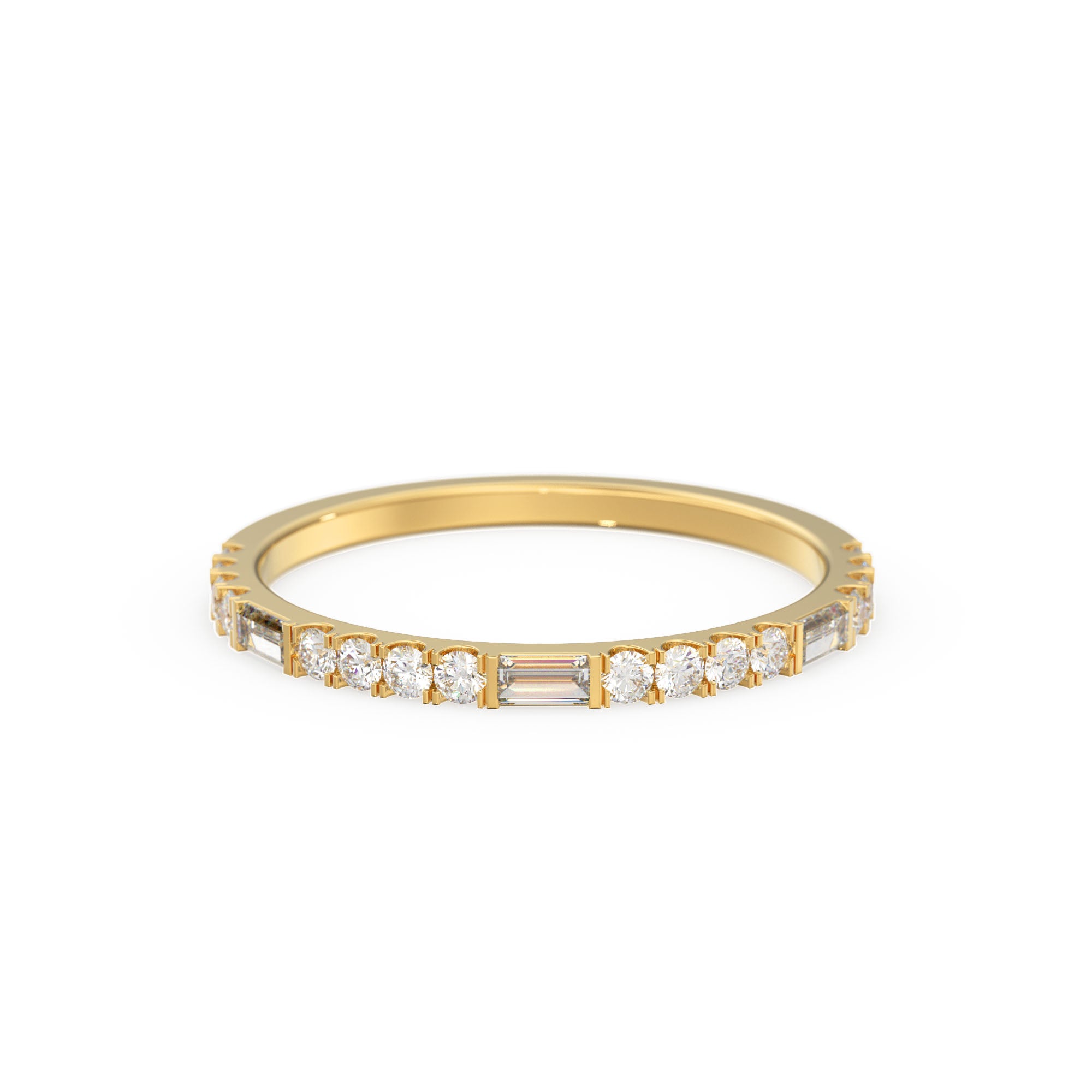 Baguette Diamond Ring / 14k Gold Baguette and Round Cut Diamond Wedding Band / Half Eternity / Stackable Diamond Ring / Anniversary Gift
