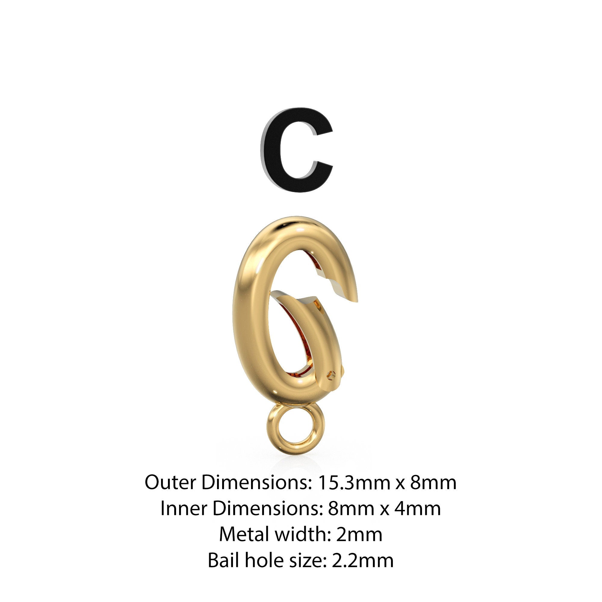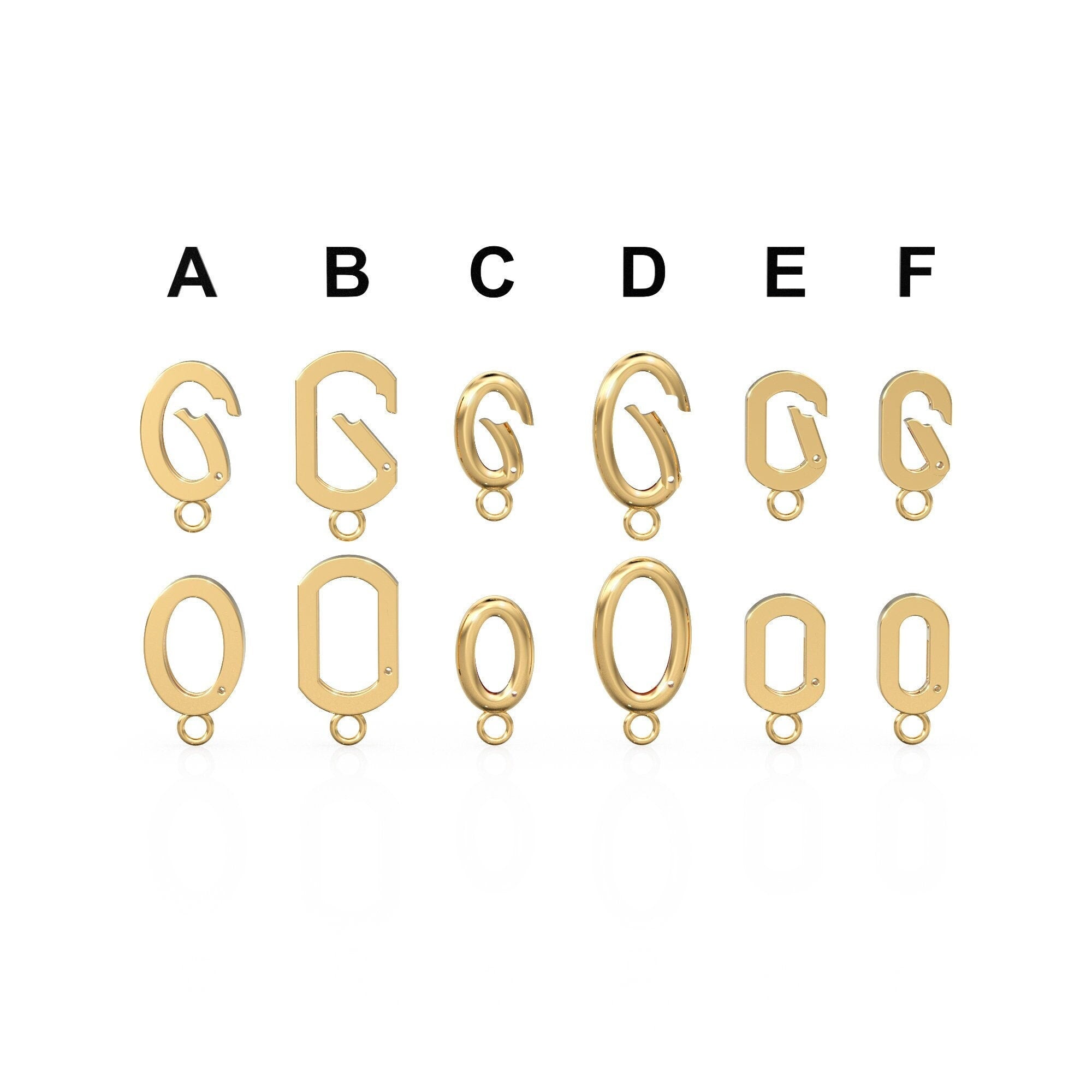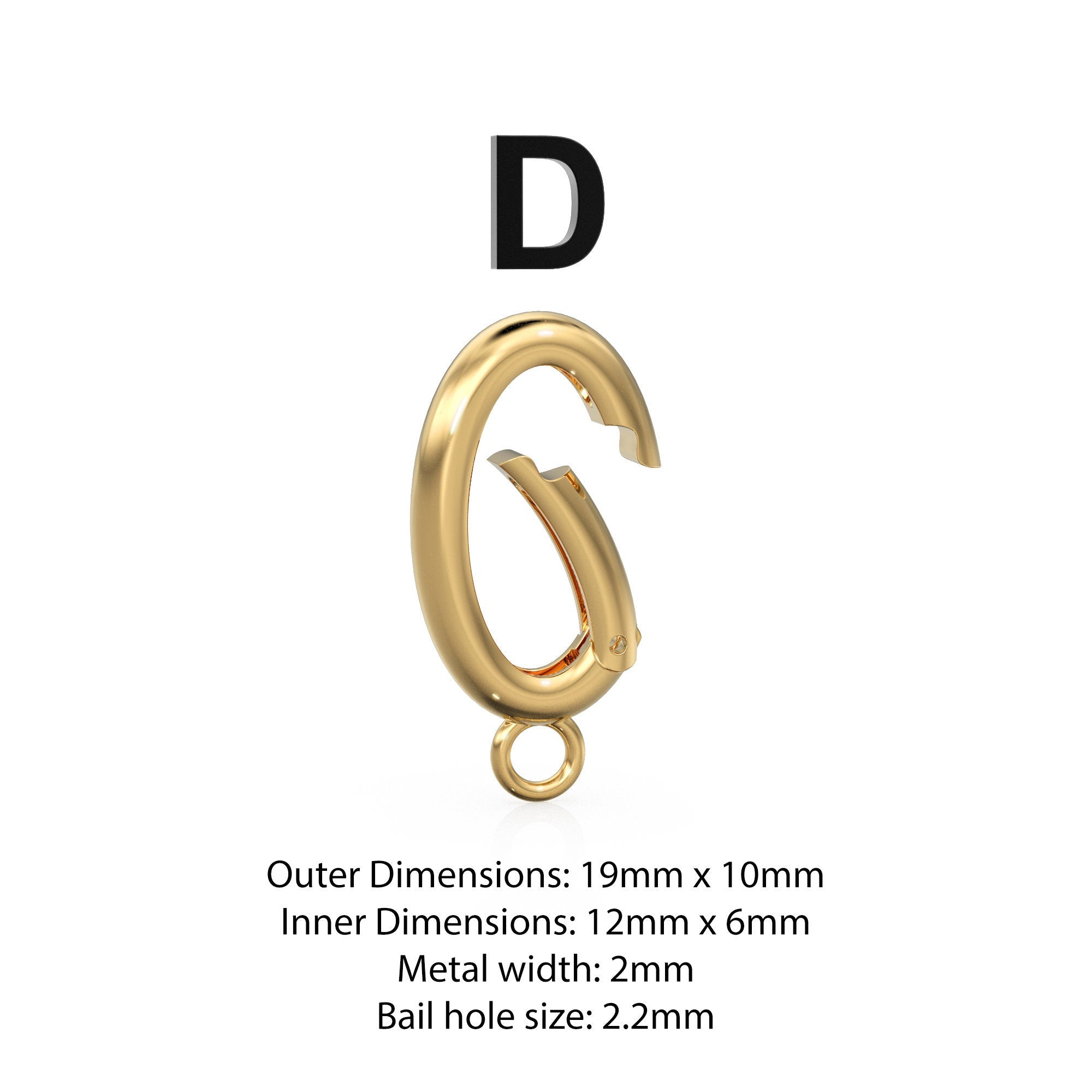 Gold Spring Clasp Charm Holder / Solid Gold Connector / 18k Gold Necklace Lock Necklace Connector / Oval Paper Clip Carabiner Jewelry Clasp