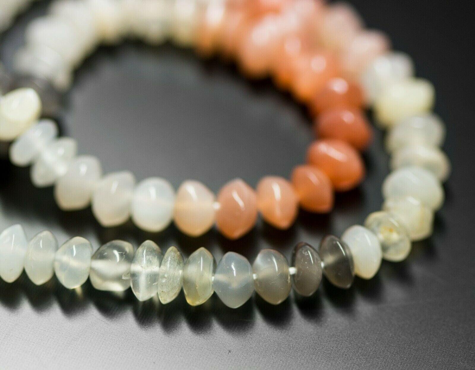 Multi Moonstone Smooth Rondelle Button Gemstone Spacer Beads - 6mm 7mm - June August Birthstone -...